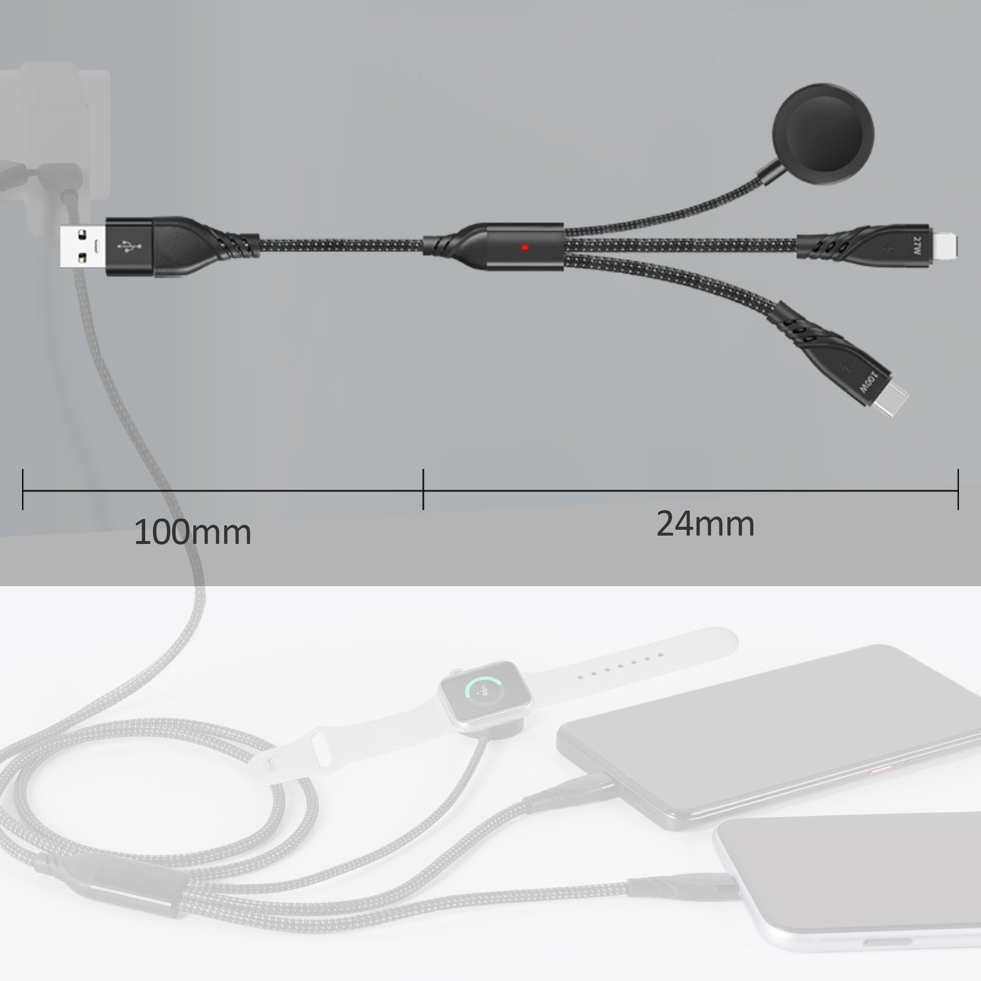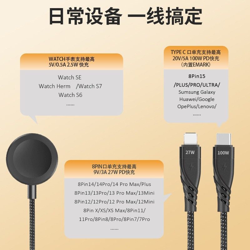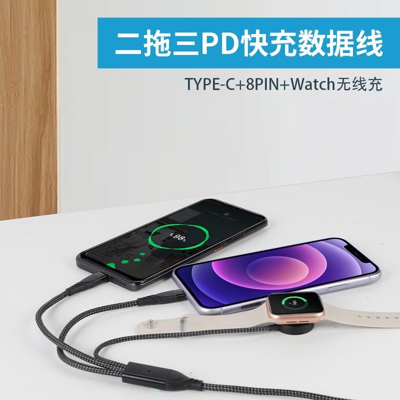 100W二拖三数据线手表无线充watch适用Type-C苹果iphone15快充