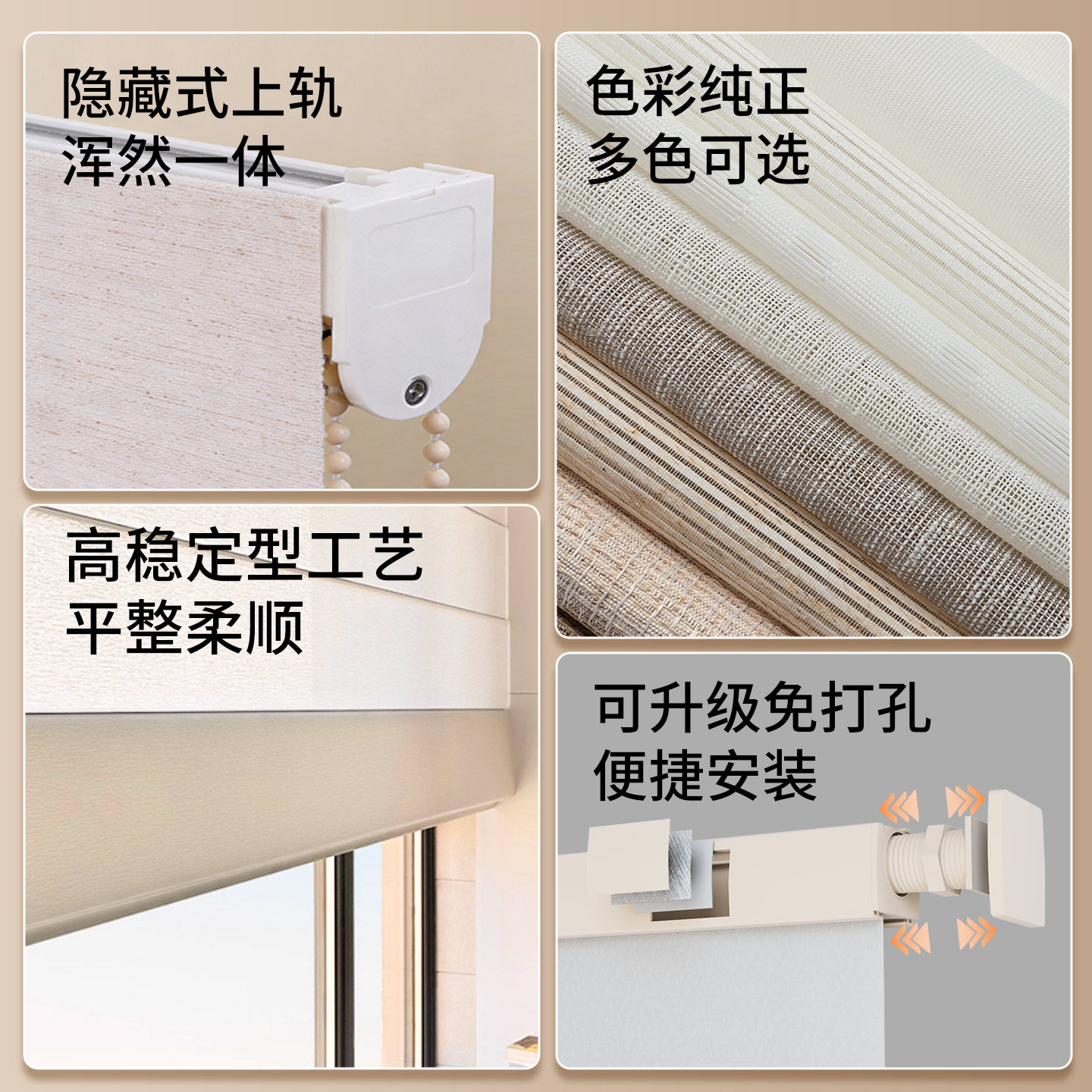 贵品亚麻中式罗马帘窗帘遮光2025新款卧室客厅餐厅书房遮阳隔断帘