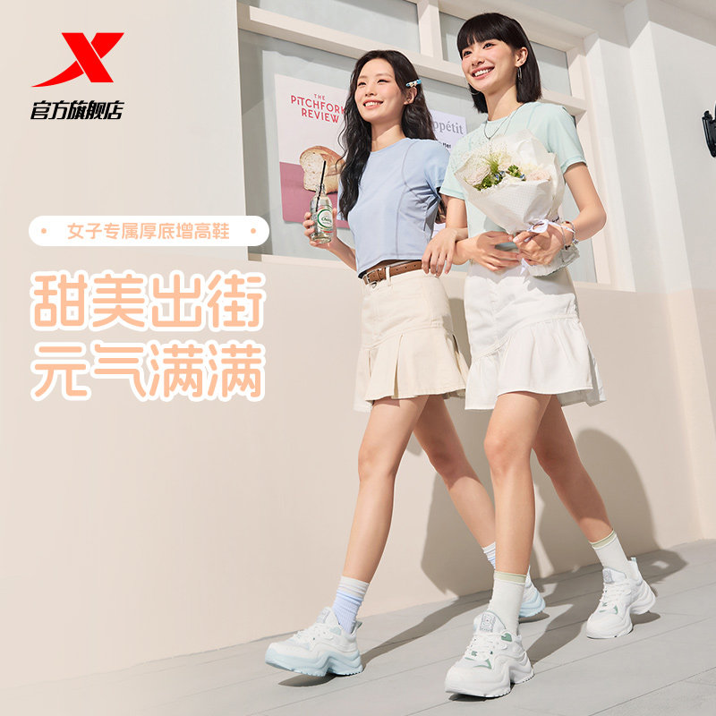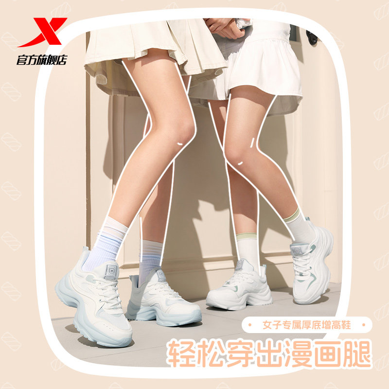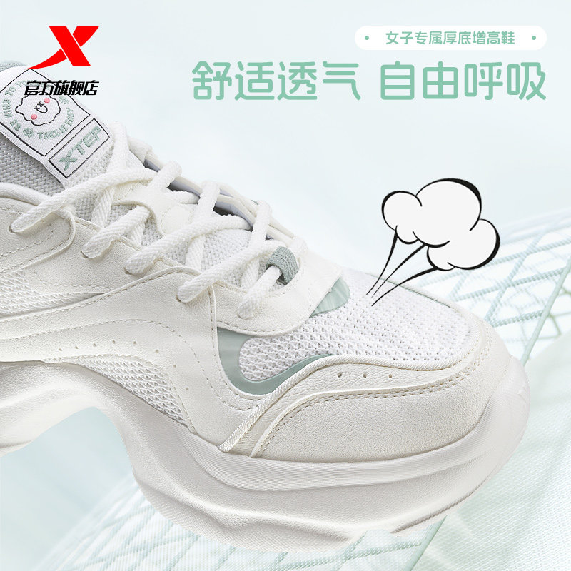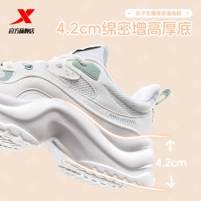 特步棉花糖跑步鞋女休闲鞋秋冬革网舒适厚底增高轻便运动鞋老爹鞋