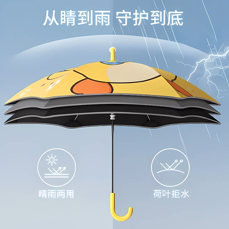 奥te曼儿童半自动黑胶防晒超轻便晴雨伞防水套男女学生公主长柄伞