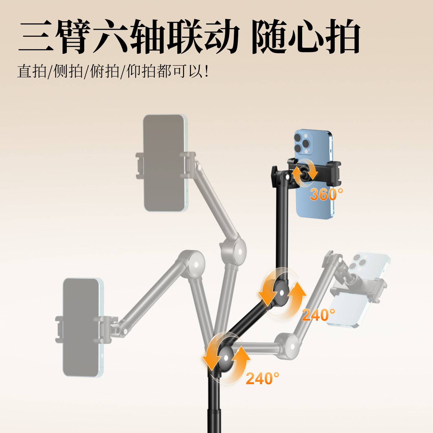 手机直播支架补光灯落地俯拍专用手机架2025新款铝合金悬臂对镜直播拍摄自拍360度旋转多功能拍摄懒人支撑架