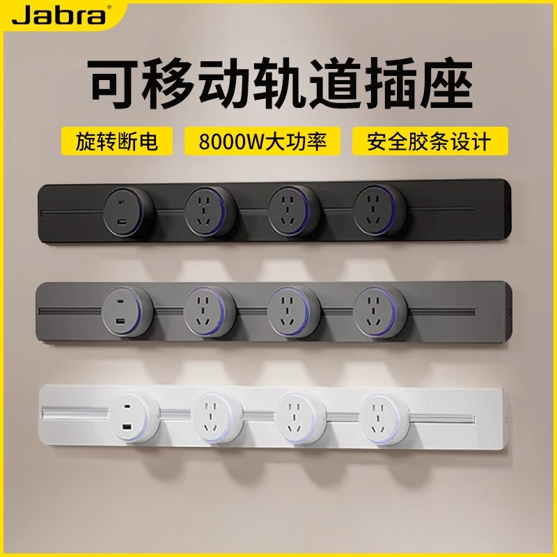 Jabra可移动轨道插座扩展明装厨房餐边柜智能滑动导轨插排接线板