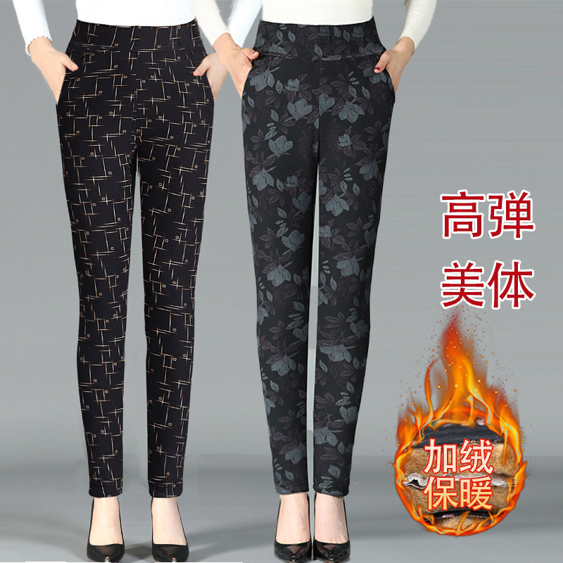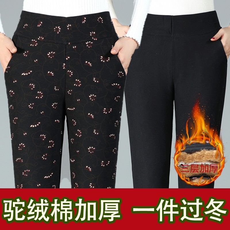 妈妈装加厚棉毛裤秋冬保暖抗寒修身高腰显瘦冬季中老年外穿棉裤女