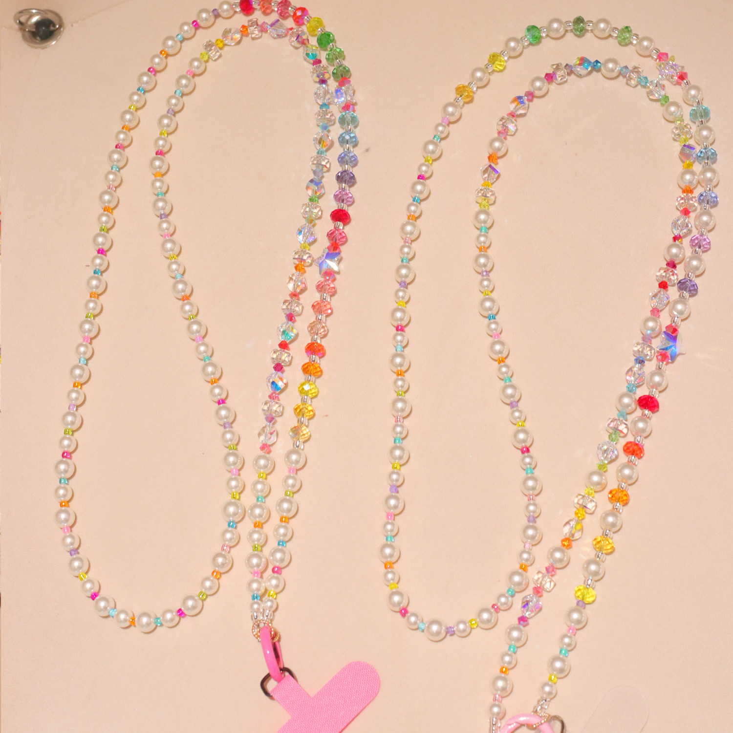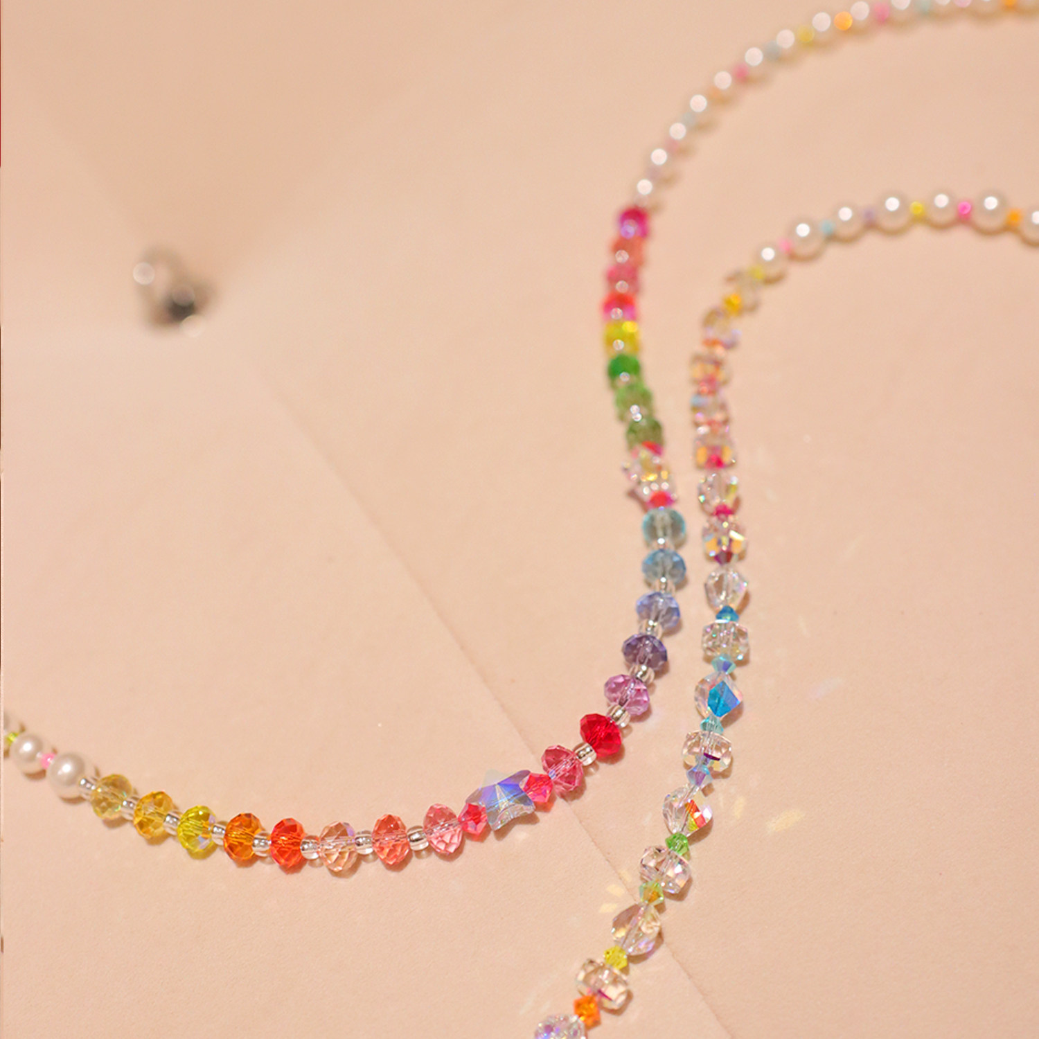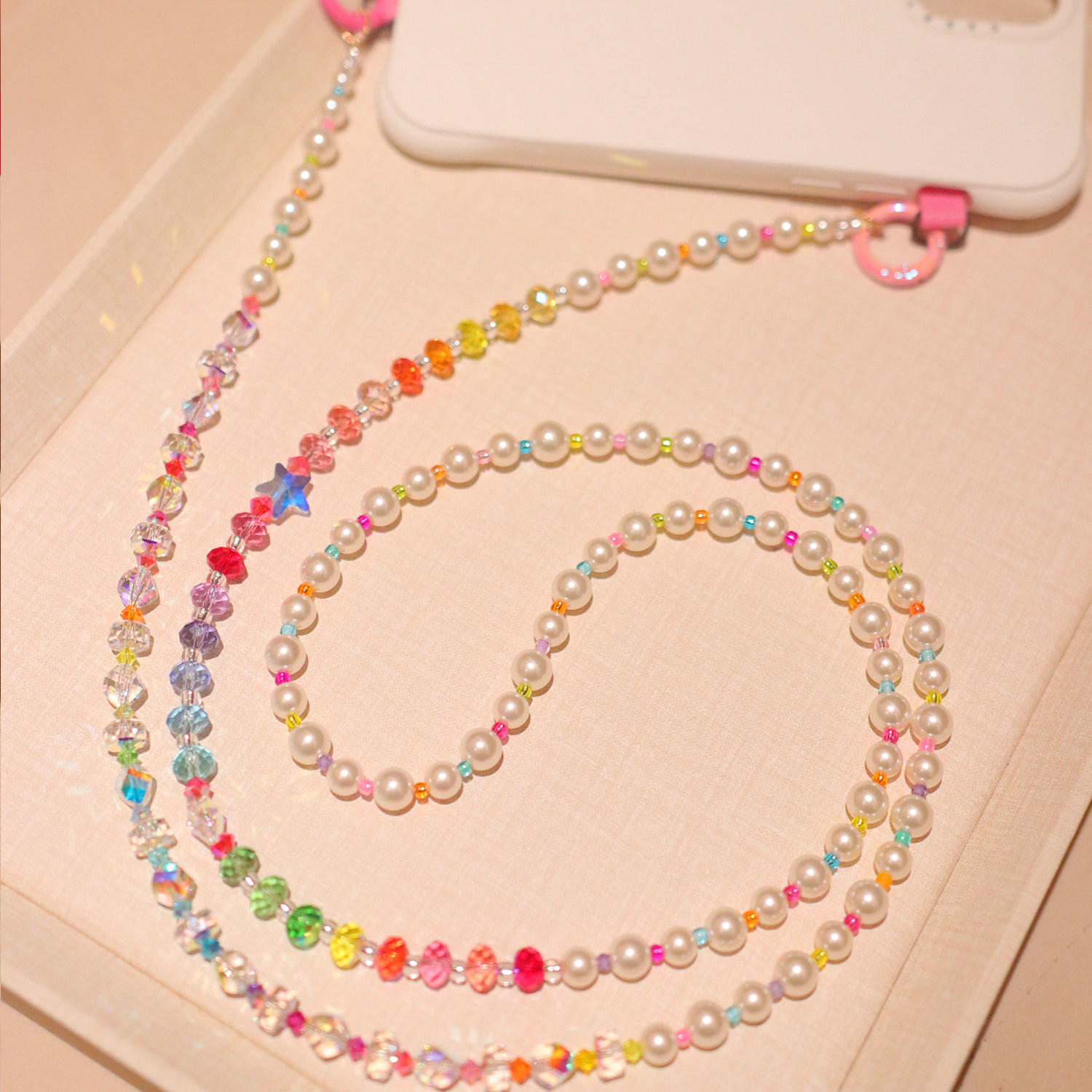 奢华高级感原创手作精致施华洛水晶彩虹渐变斜挎手机链包包链饰品