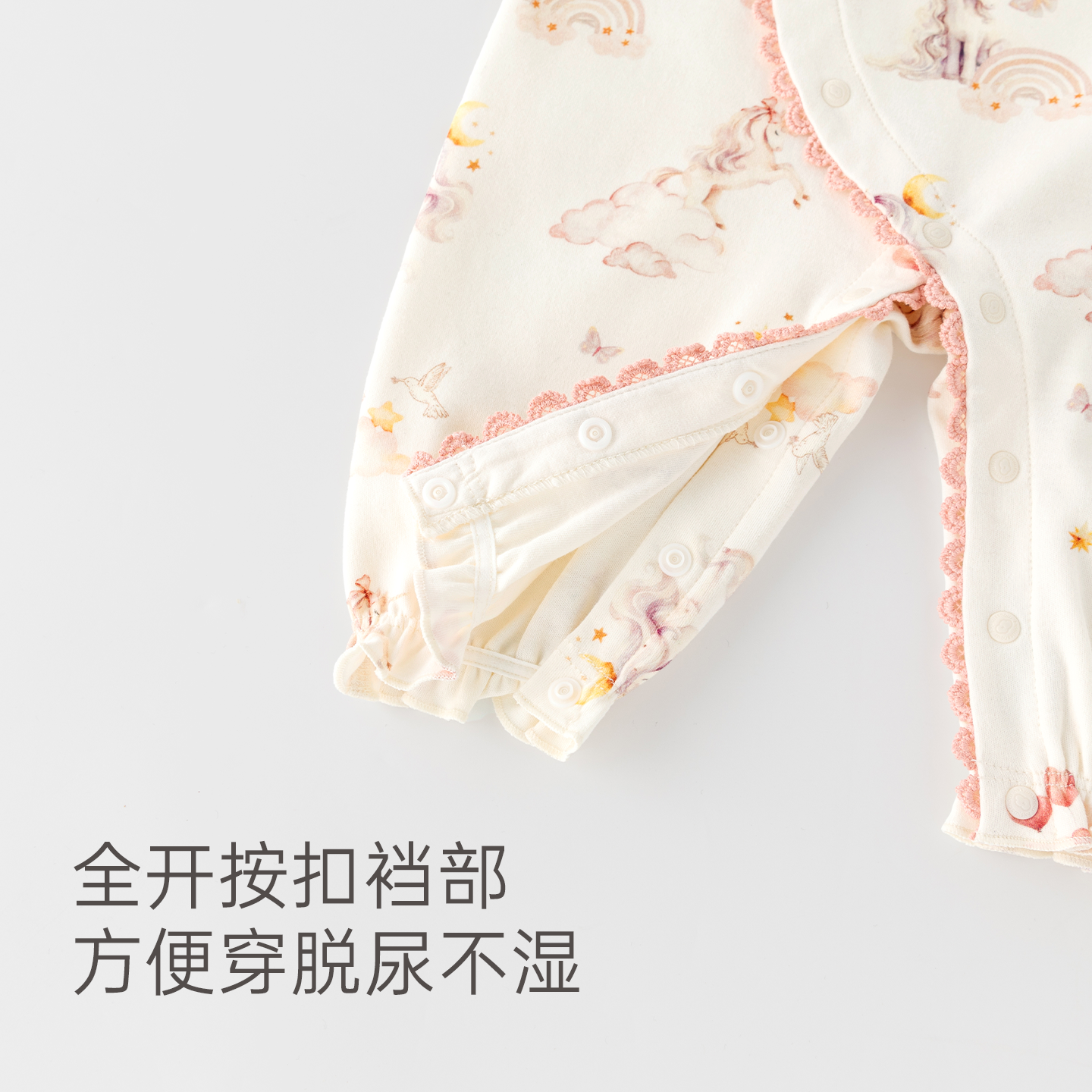 木生棉女宝宝马年连体衣春秋季婴儿保暖纯棉无骨哈衣爬服家居睡衣