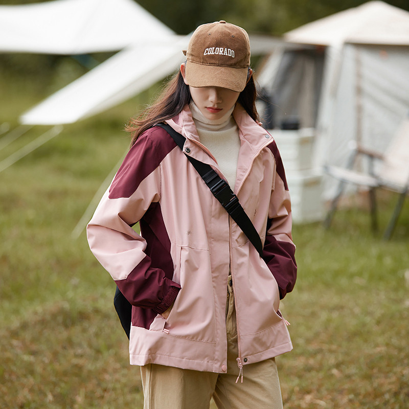 骆驼女装三防冲锋衣短款外套小个子新款夹克女户外防风防水登山服
