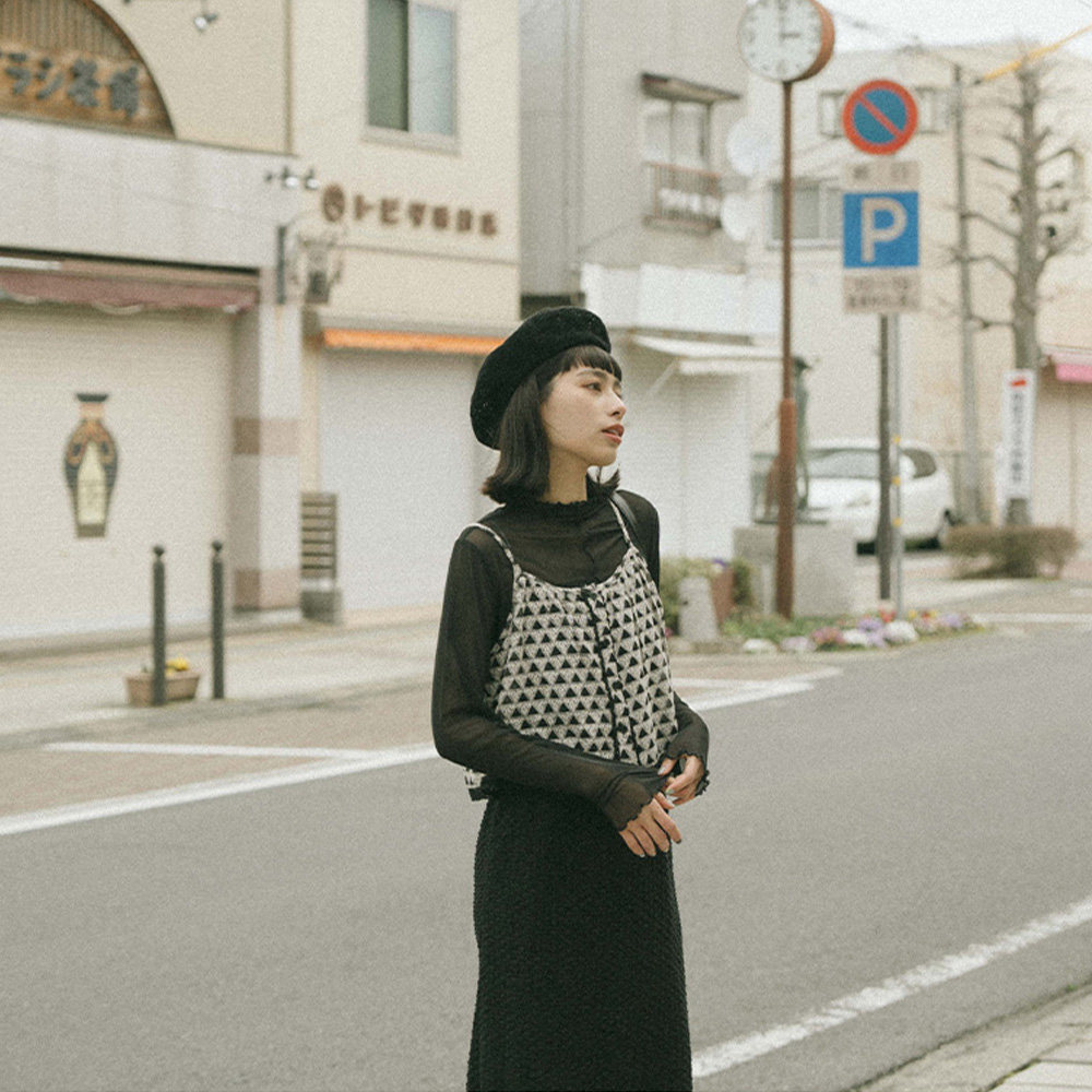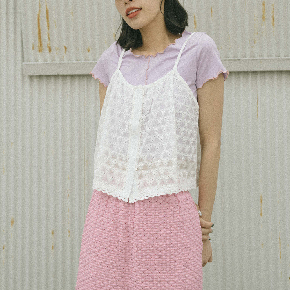 QUEENSHOP 2025秋冬新品女装三角缇花透肤吊带细肩背心01098063