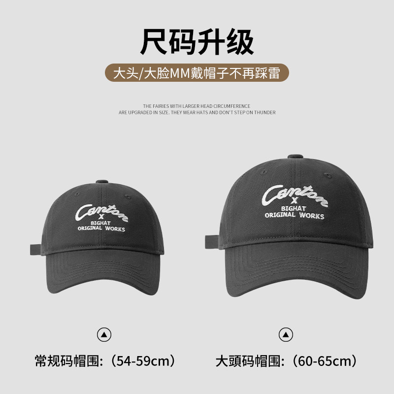 美式复古字母灰色棒球帽女高级感宽檐大头围显脸小百搭鸭舌帽子男