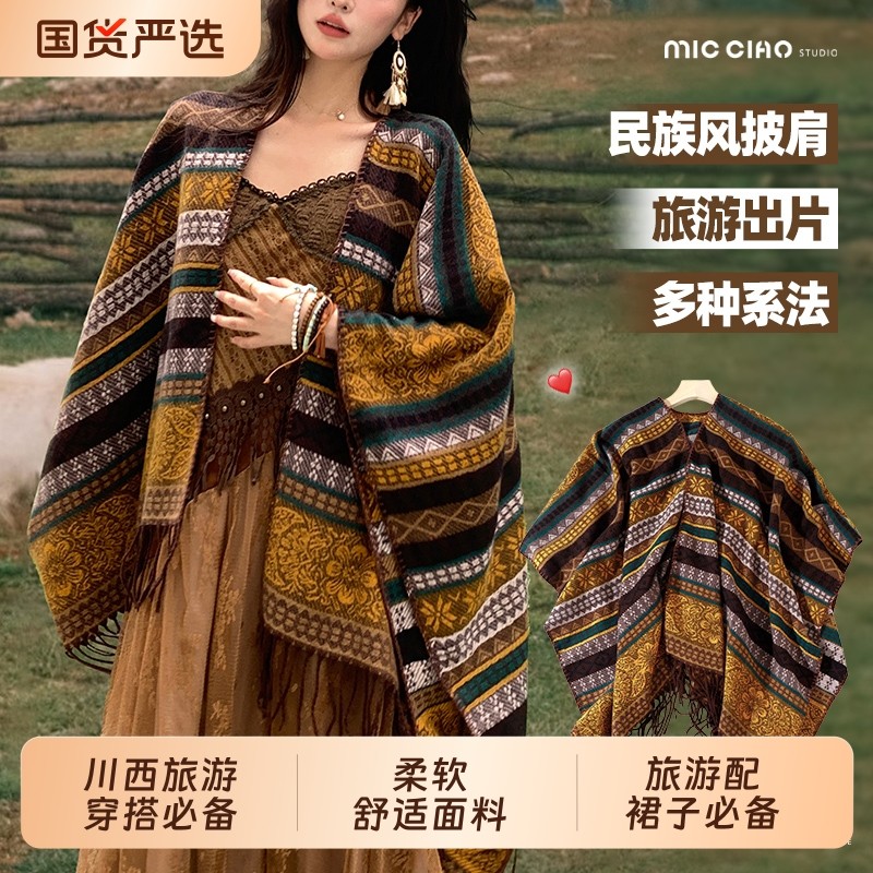 波西米亚民族风披肩女配裙子外搭针织开衫斗篷云南川西藏旅游穿搭