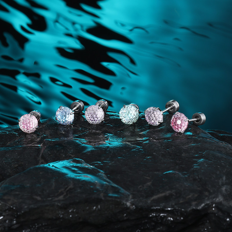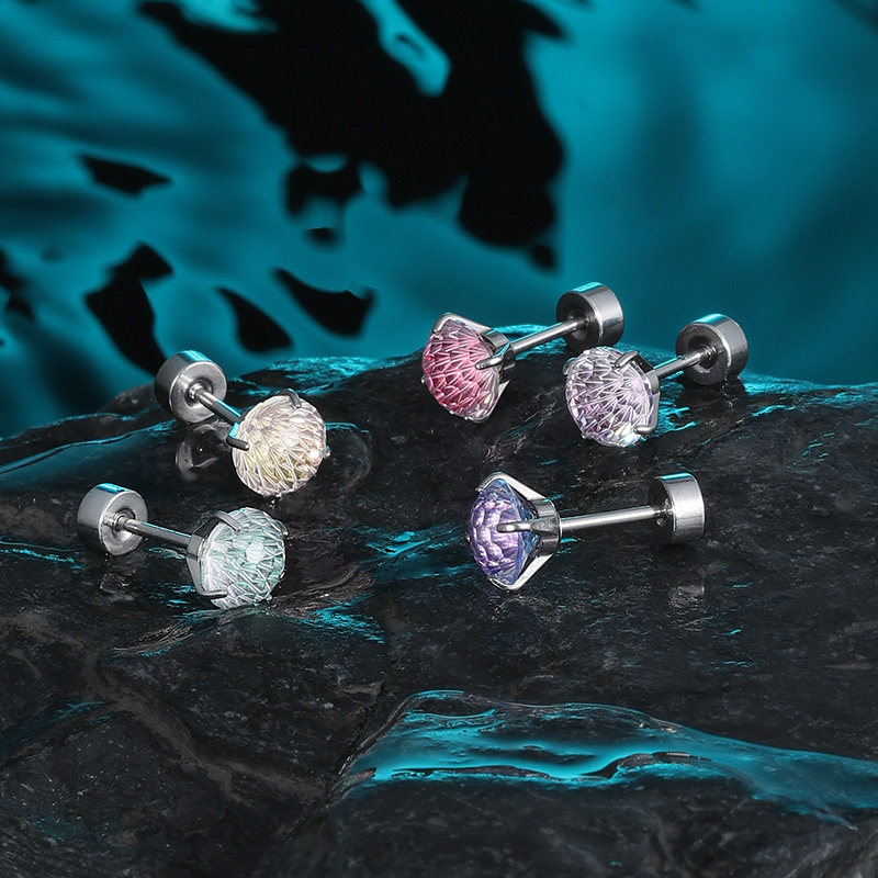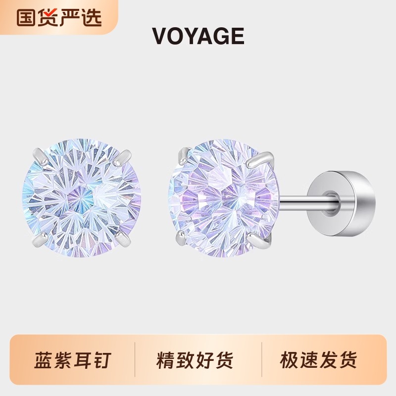 钛钢耳钉蓝紫色渐变烟花切耳骨钉养耳洞耳蜗钉酷帅耳环耳饰女精致