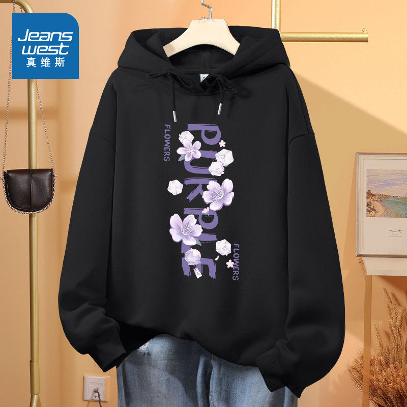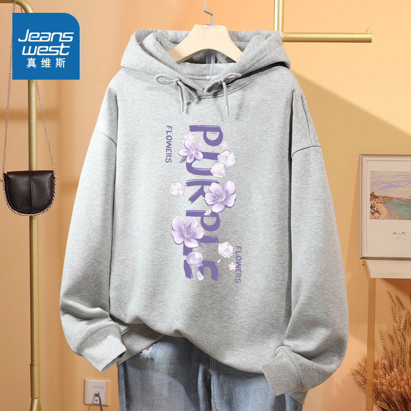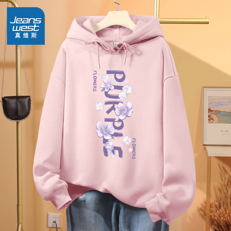 KHV真维斯连帽卫衣女冬季2025新款加绒加厚紫色长袖上衣套头外套