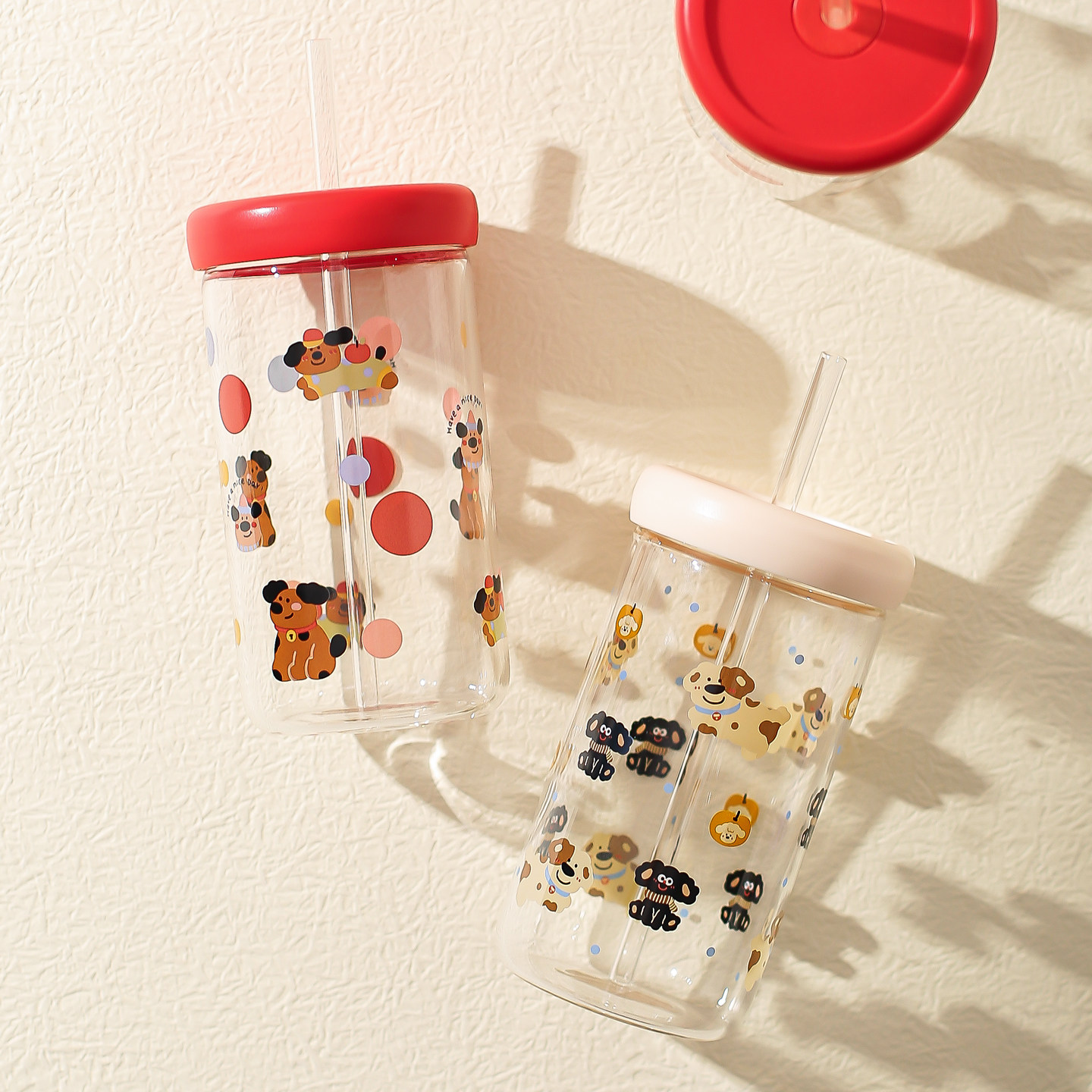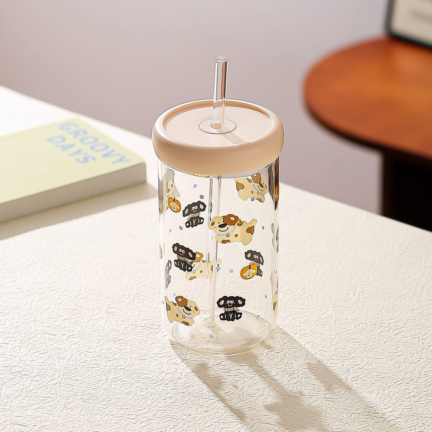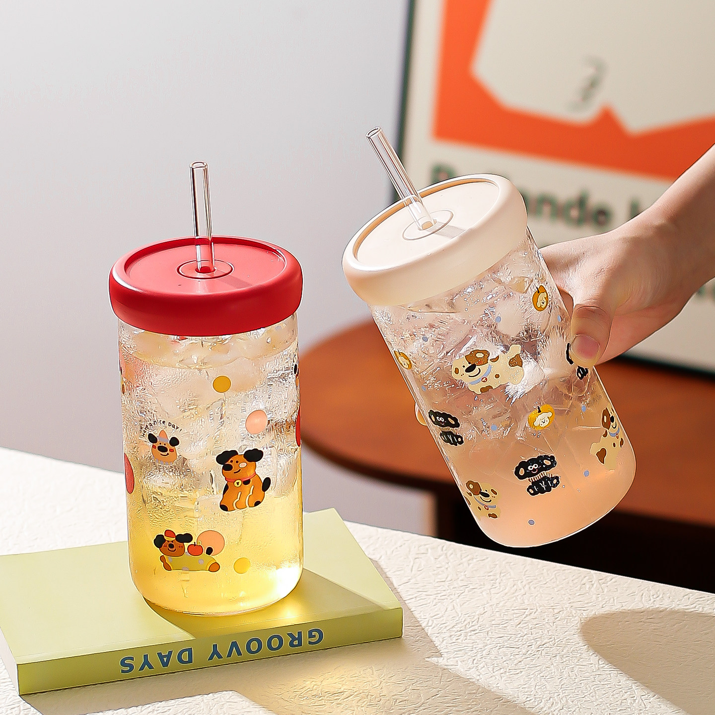 可爱卡通玻璃杯大容量水杯2024新款女杯子办公室家用牛奶杯奶茶杯