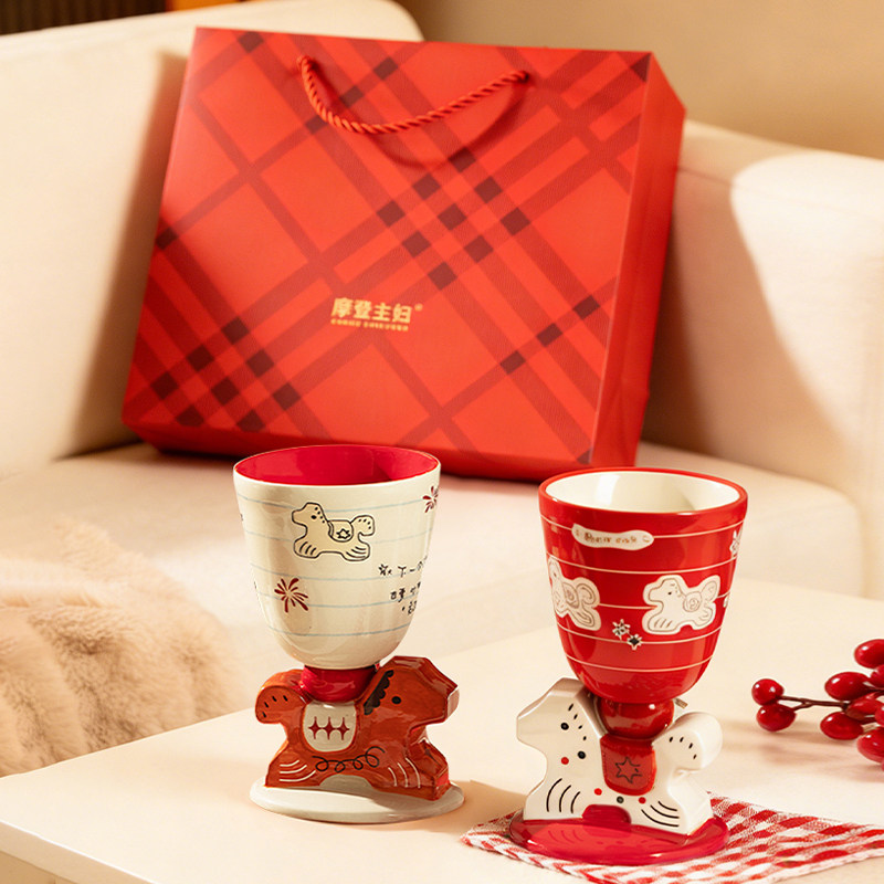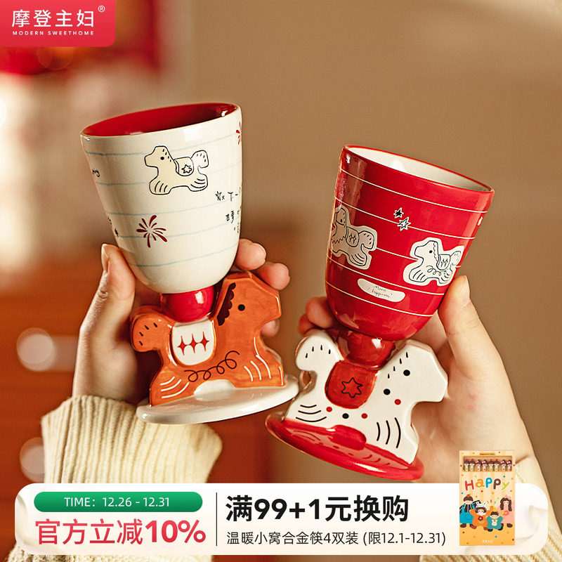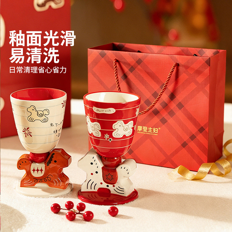 摩登主妇陶瓷马克杯新年本命年礼物生日红色水杯情侣对杯马年杯子