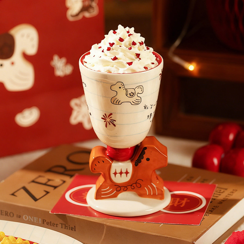 言仓线条小狗马克杯陶瓷水杯实用儿童女生情侣新年生日礼物