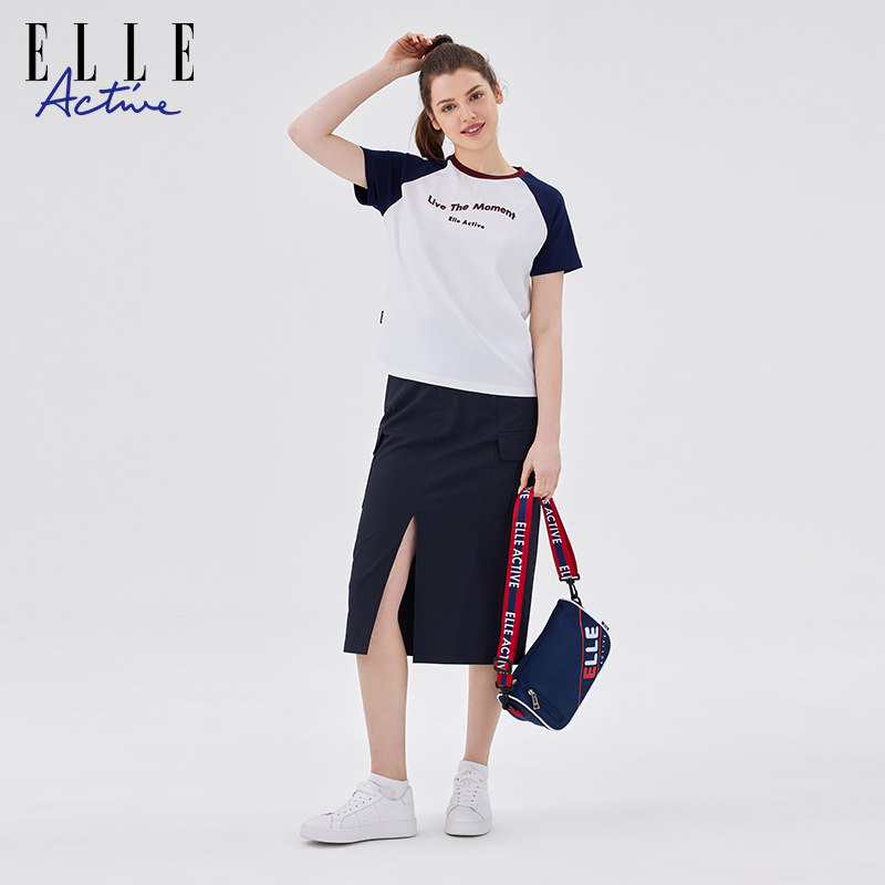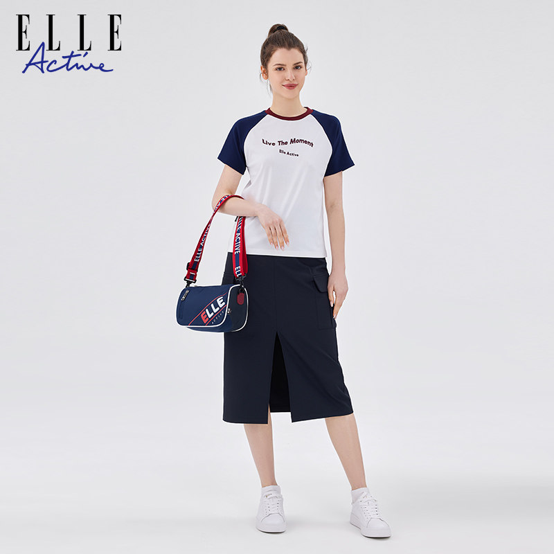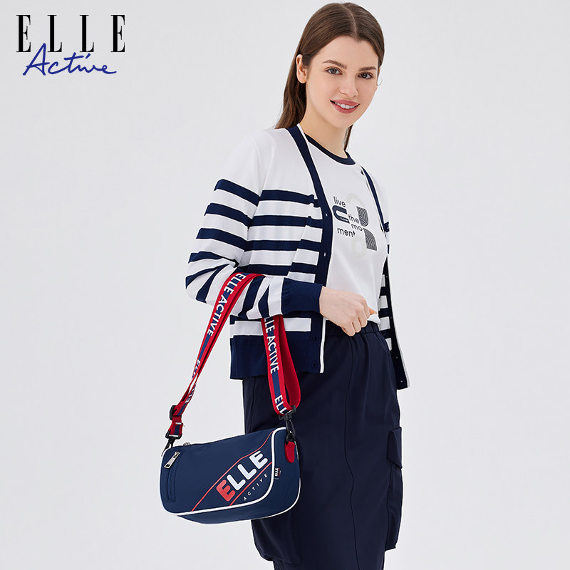 ELLE Active新款女包拼色字母印花尼龙运动斜挎包休闲百搭单肩包