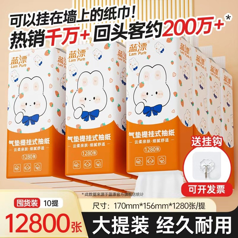 蓝漂1280张大包悬挂式抽纸厕纸面巾纸餐巾纸卫生纸抽大尺寸囤货装