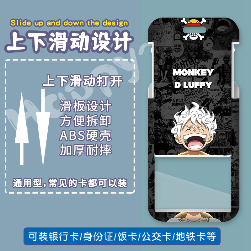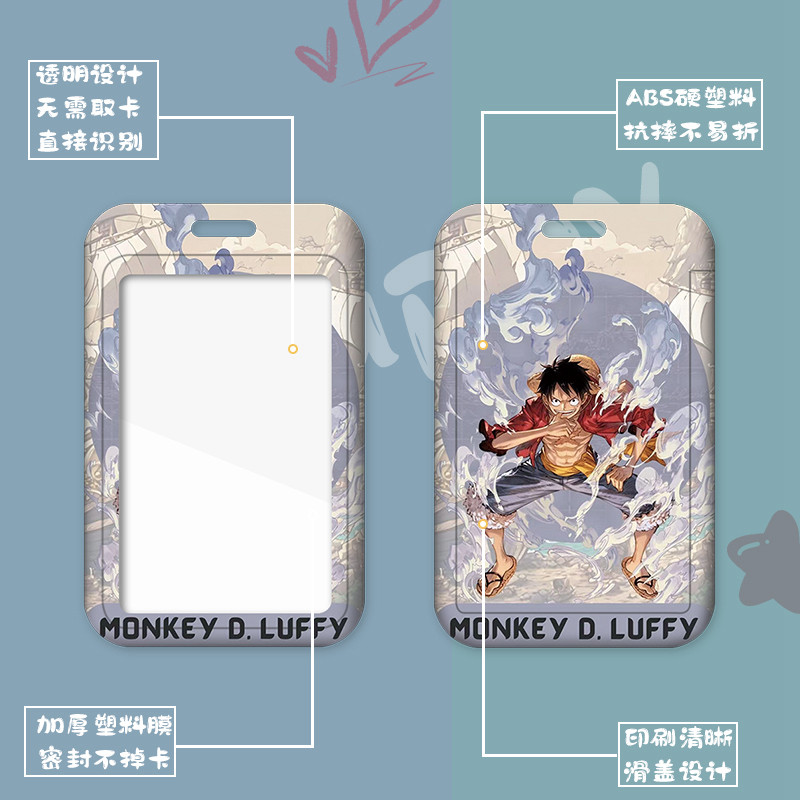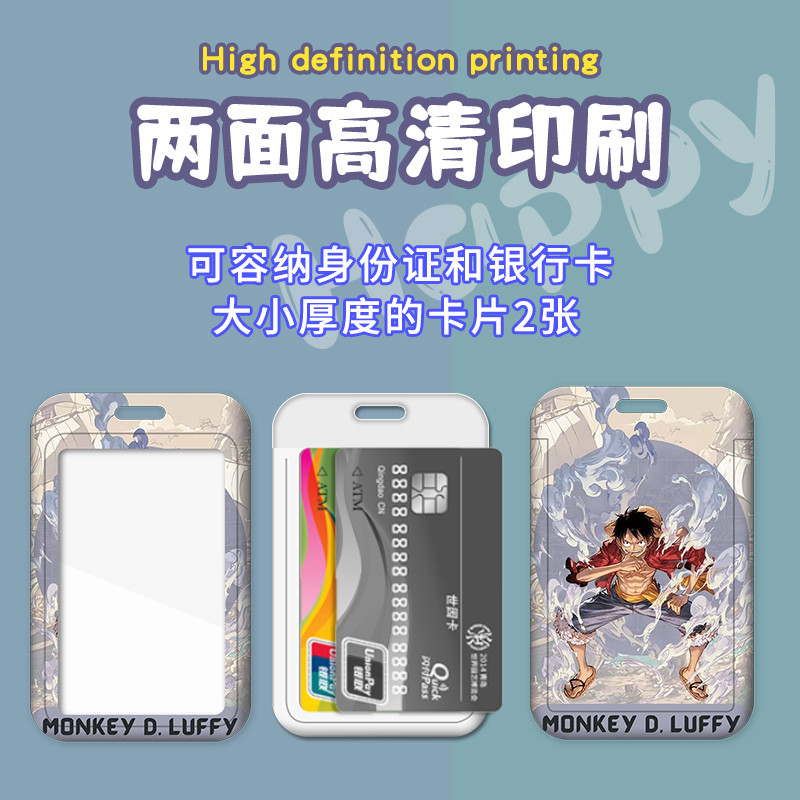 海贼路飞卡套学生饭卡水卡公交地铁卡校牌胸卡工作证挂脖钥匙扣防丢透明弹簧身份银行滑盖
