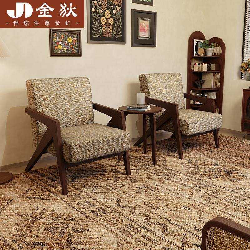 实木桌椅组合商务理查德酒吧休息区接待洽谈沙发椅商用家具餐桌