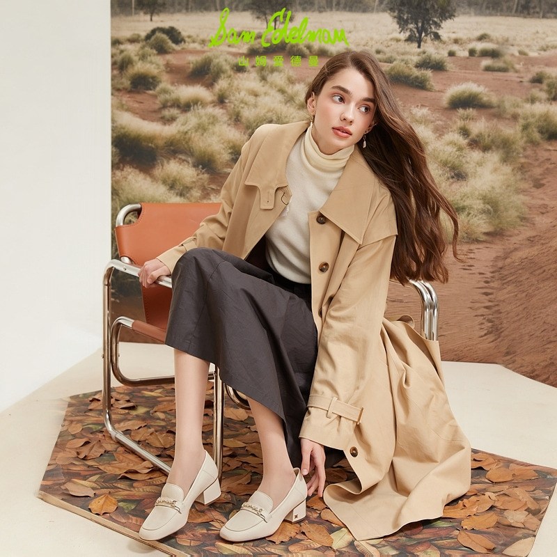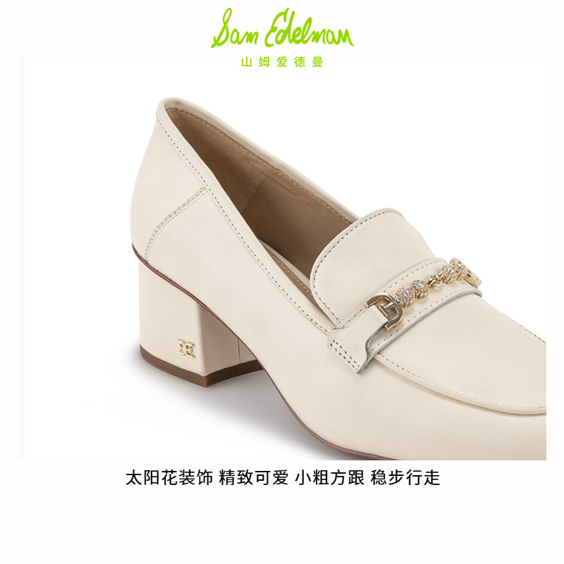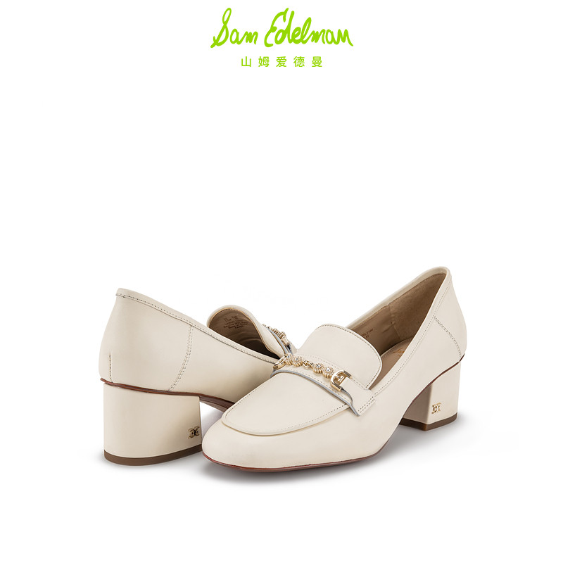 SAM EDELMAN山姆爱德曼春衔扣白色圆头粗高跟乐福单鞋女FAVEL