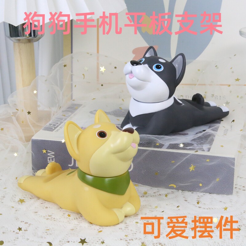 可爱狗狗手机支架卡通萌趣桌面柴犬手机架支撑架手机座懒人神器创意多功能平板支架pvc办公桌面摆件创意礼物