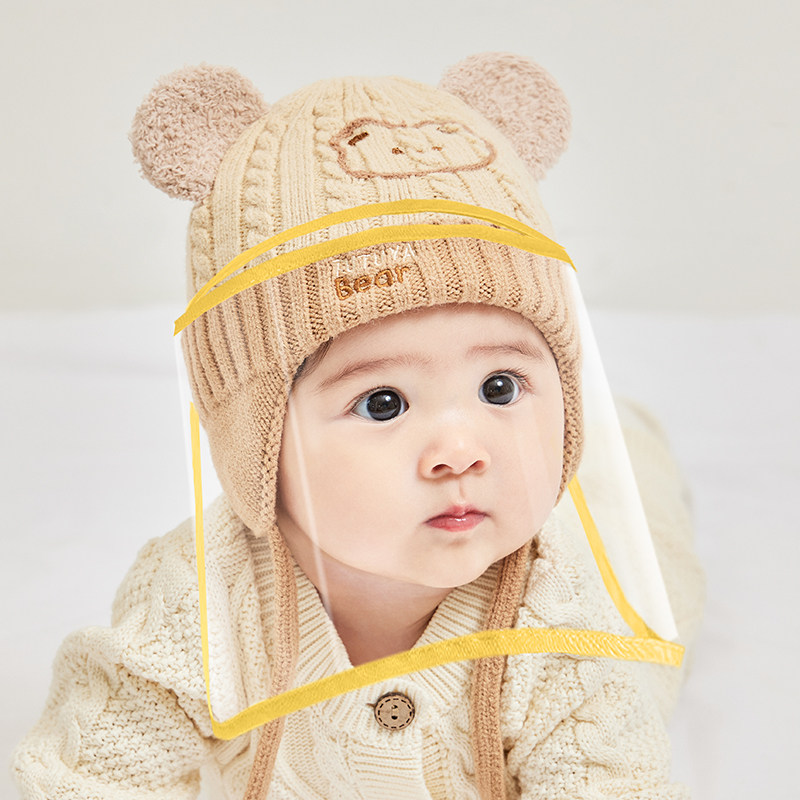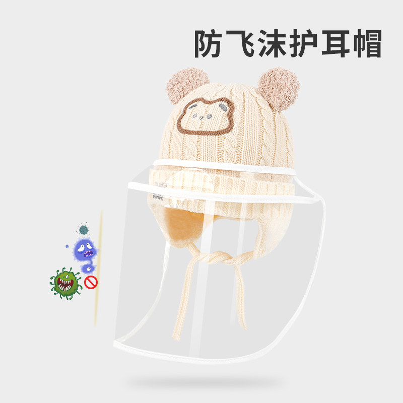 婴儿防护面罩新生儿帽子小月龄防飞沫防护帽宝宝外出遮脸隔离防风
