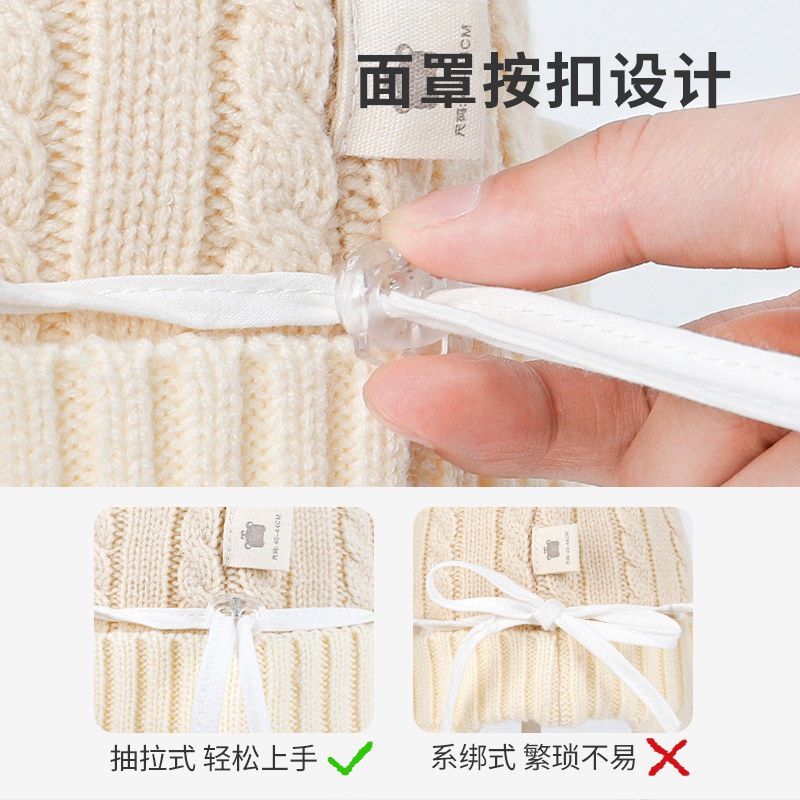 hugz儿童帽子围巾秋冬户外男孩女孩保暖针织毛线帽护耳防风熊仔帽