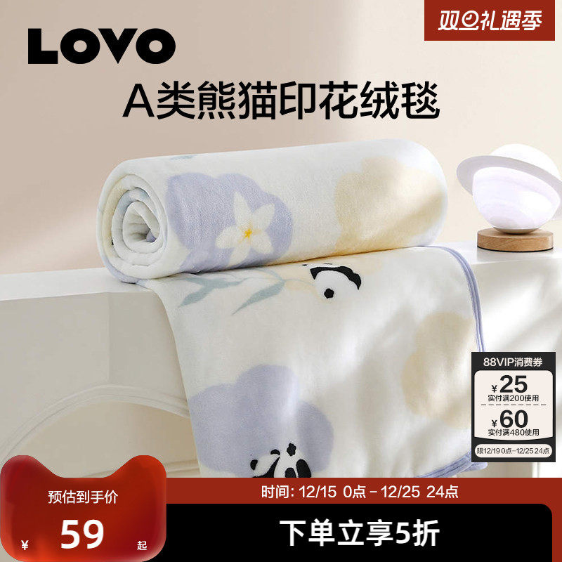 罗莱生活LOVO乐蜗毛毯可爱熊猫毯百搭办公室客厅盖毯午睡毯小毯子