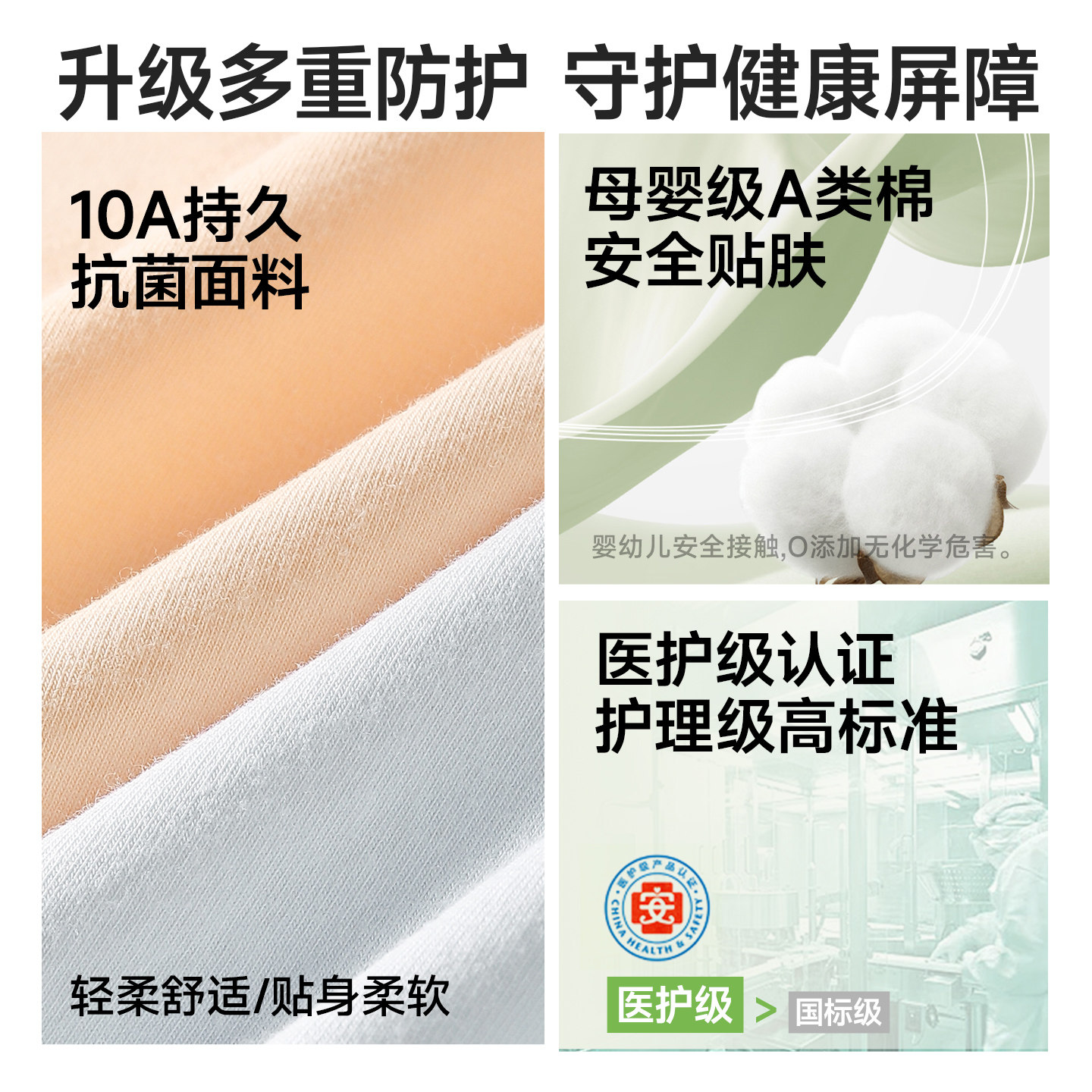 10a级抗菌 亲肤纯棉 撞色腰头