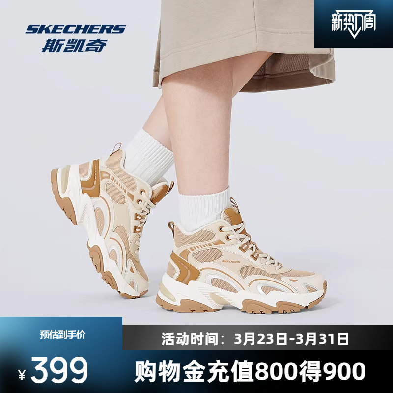 斯凯奇加绒机甲老爹鞋女款复古高帮鞋轻质保暖舒适时尚潮流