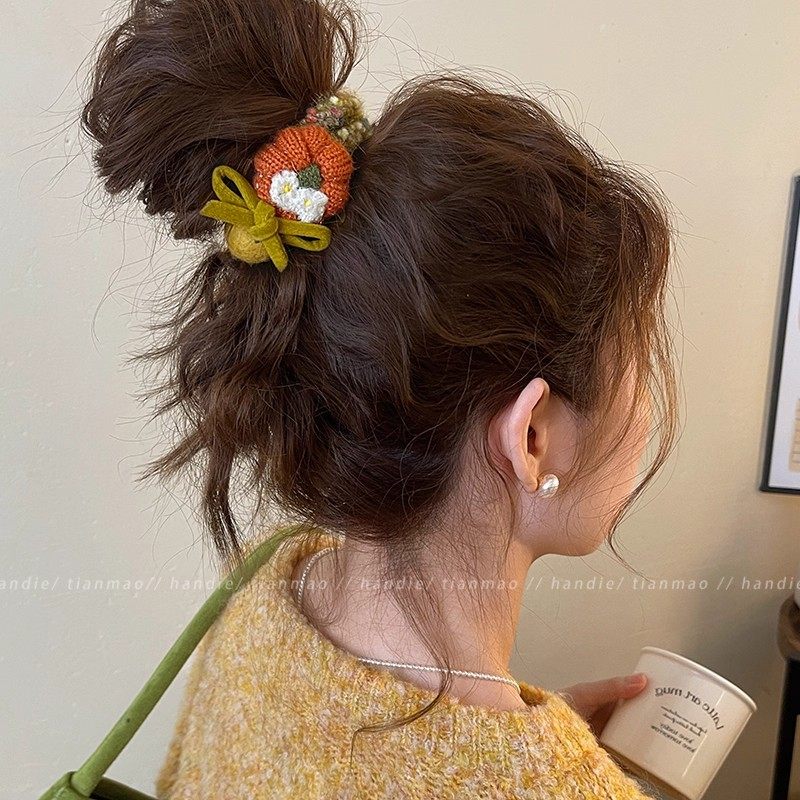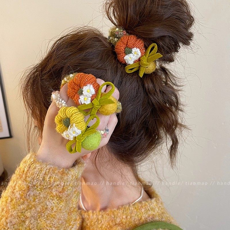 万事不南~韩系毛线南瓜发绳超可爱高级感头绳丸子头发圈皮筋发饰