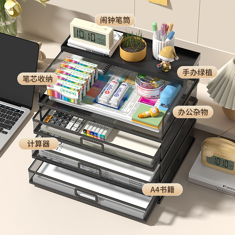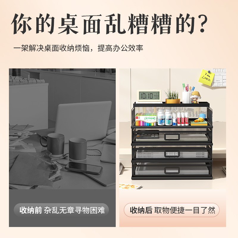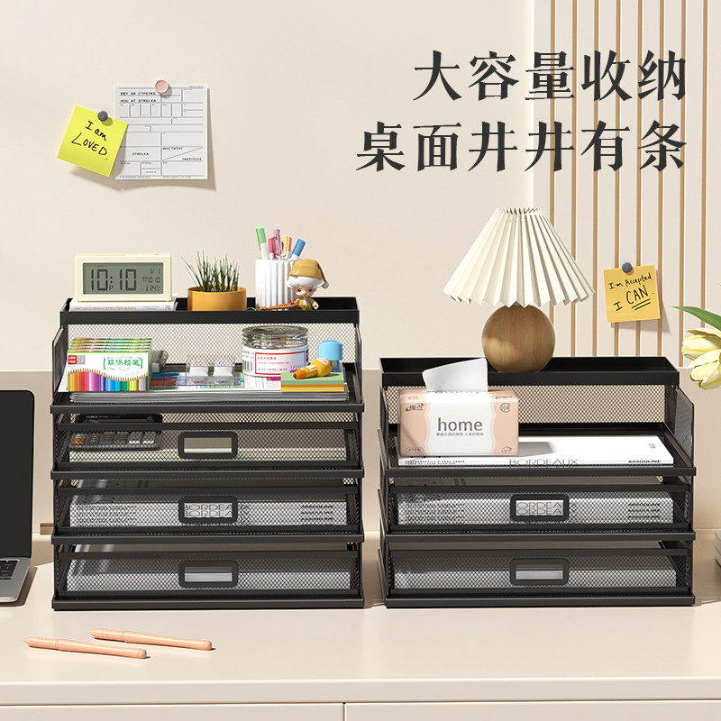 金属可抽拉文件盘文件架桌面多层办公室a4金属网纹收纳架分层文件筐立体整理资料文件档案书架加厚铁艺收纳盒