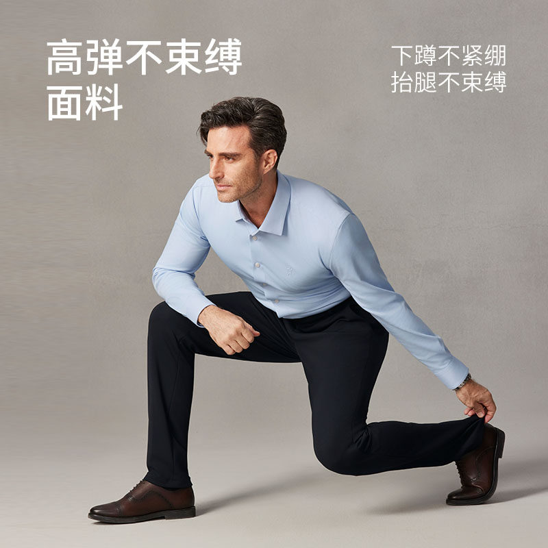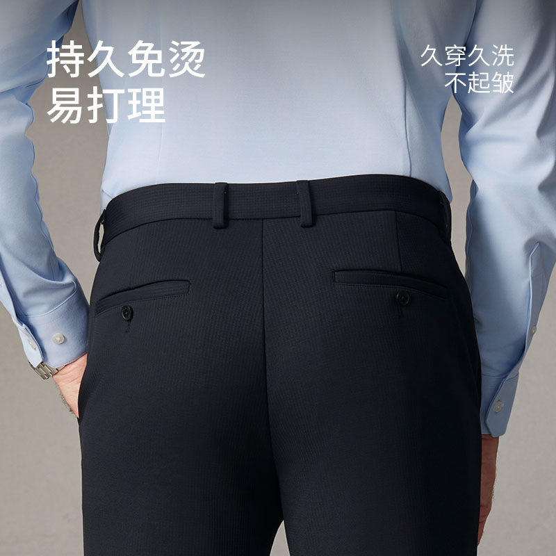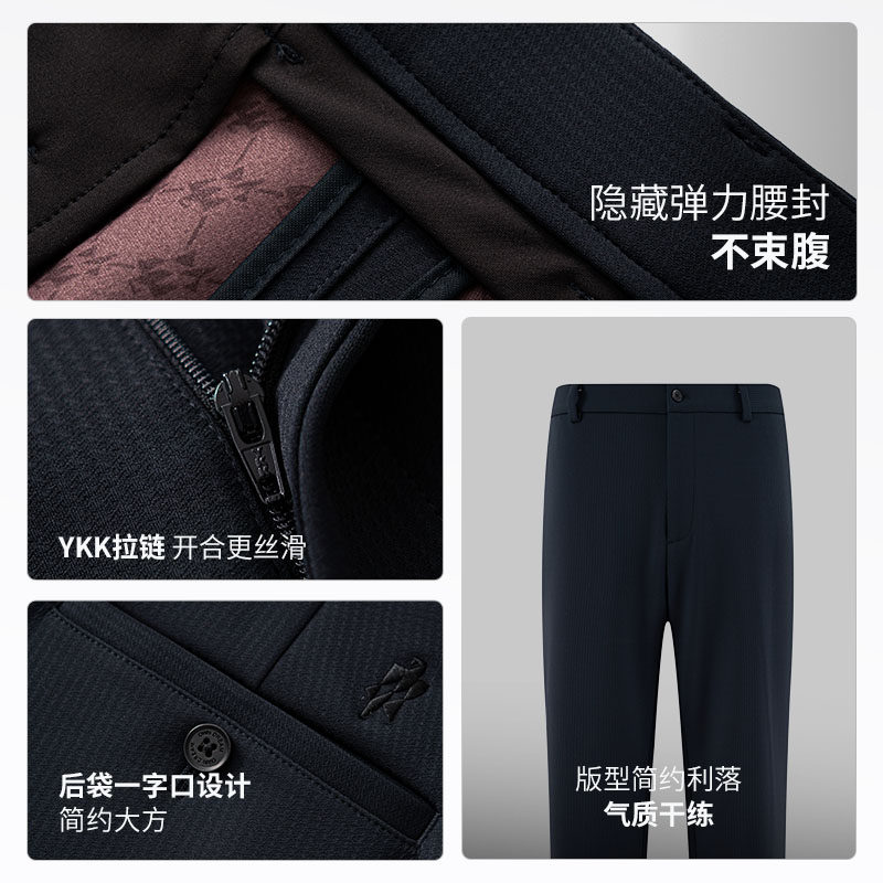 【高弹免烫】欧定头等舱西裤男正装猎鹰藏青暗格商务定制休闲裤子