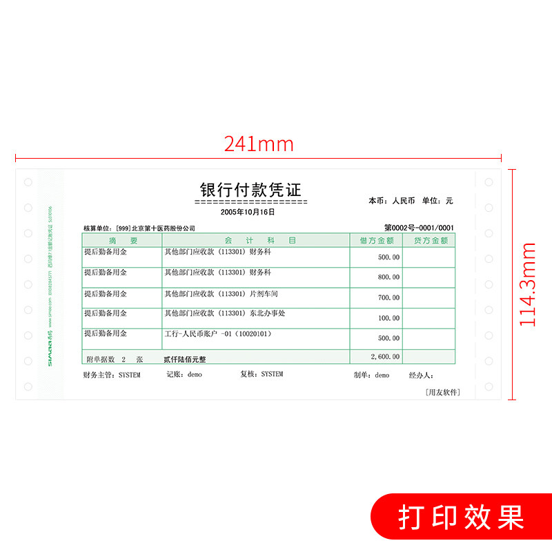 用友表单7.1金额记账凭证SL010106-3凭证与L010106格式尺寸一致用友软件T3 T6 U8 NC适用西玛记账凭证