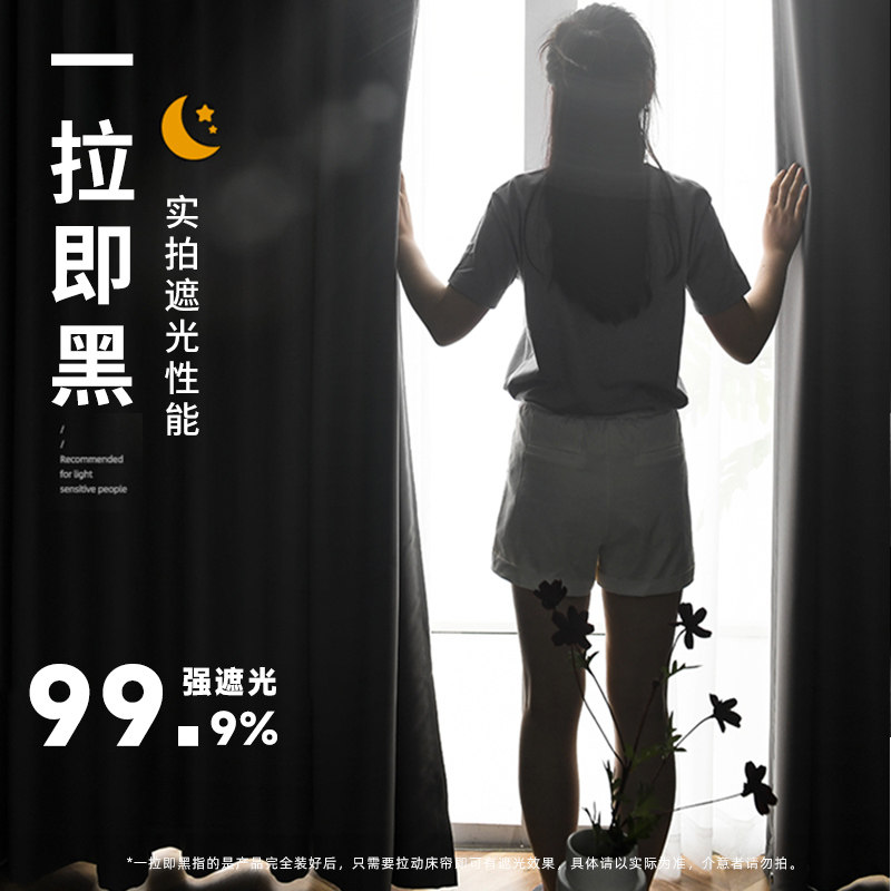 窗帘强遮光卧室高级感帘子阳台遮挡帘挂钩高遮光隔热客厅床帘双层