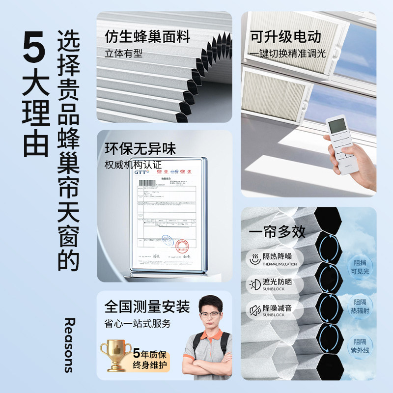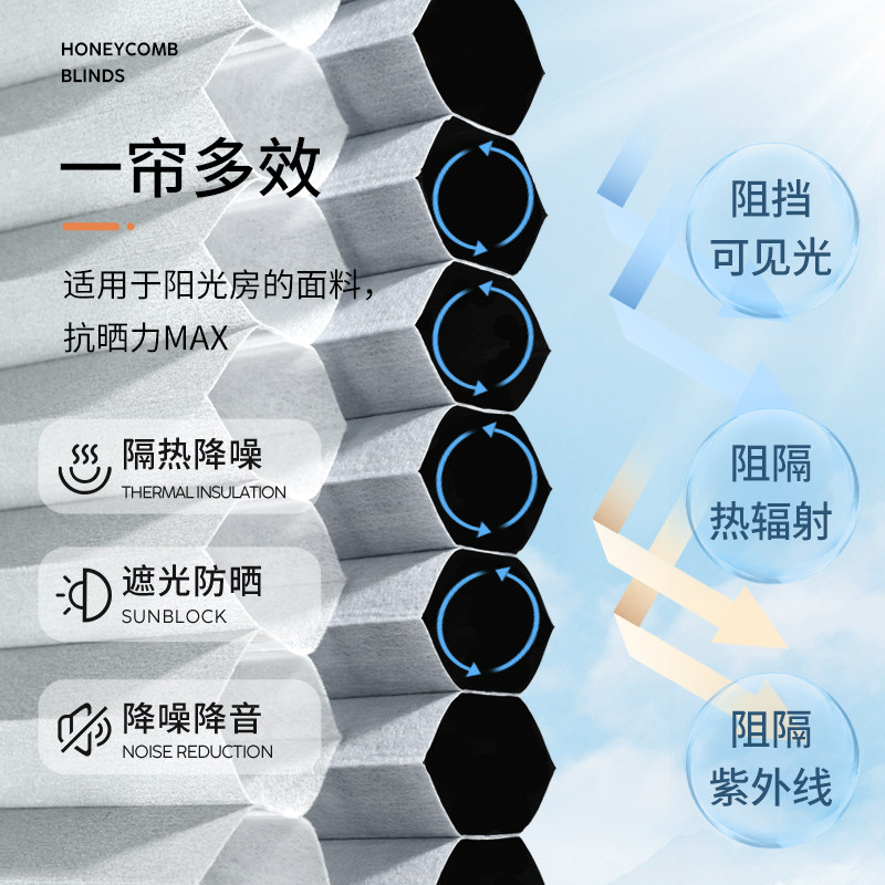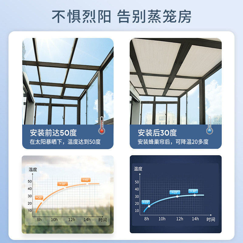 贵品蜂巢帘电动天窗阳光棚玻璃房顶棚天窗隔热防晒帘遮光隔热窗帘