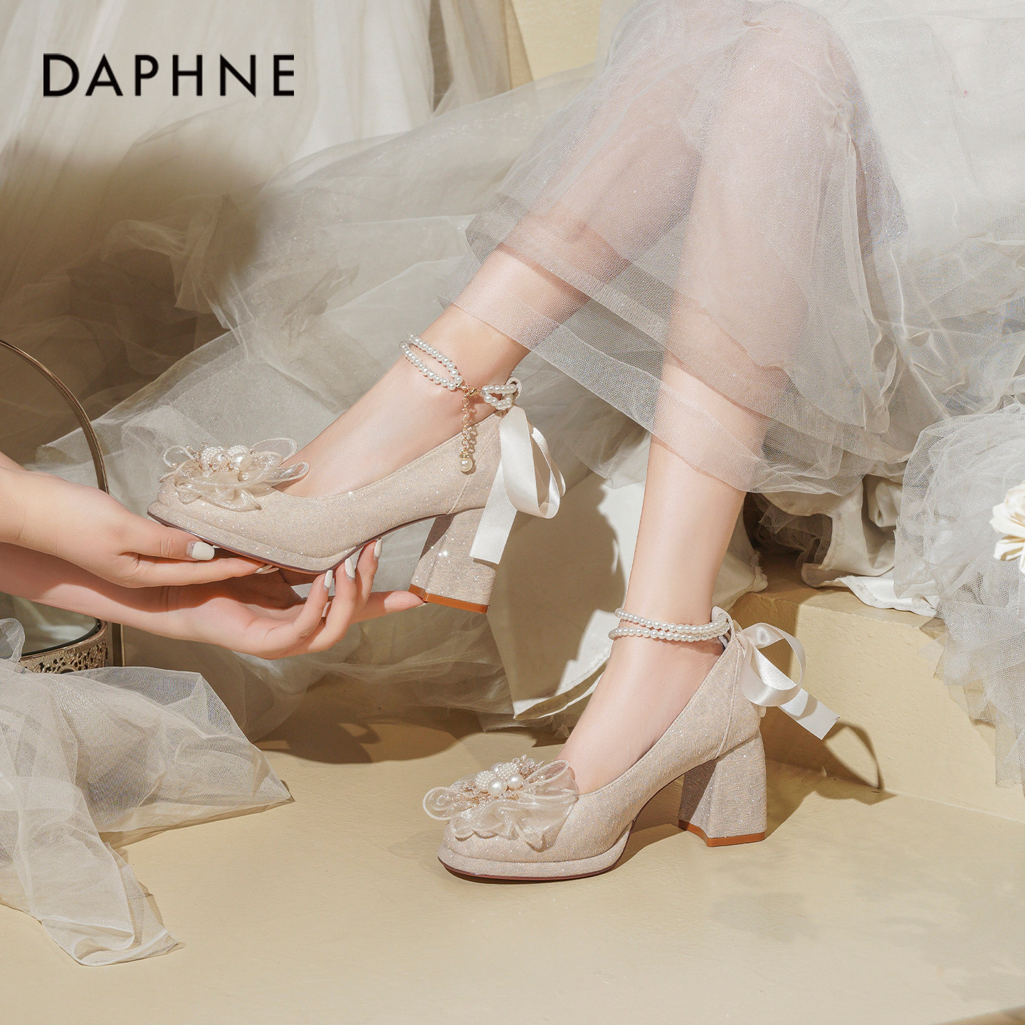 达芙妮粗跟玛丽珍高跟鞋女2026新款秀禾婚纱两穿公主订婚鞋新娘鞋
