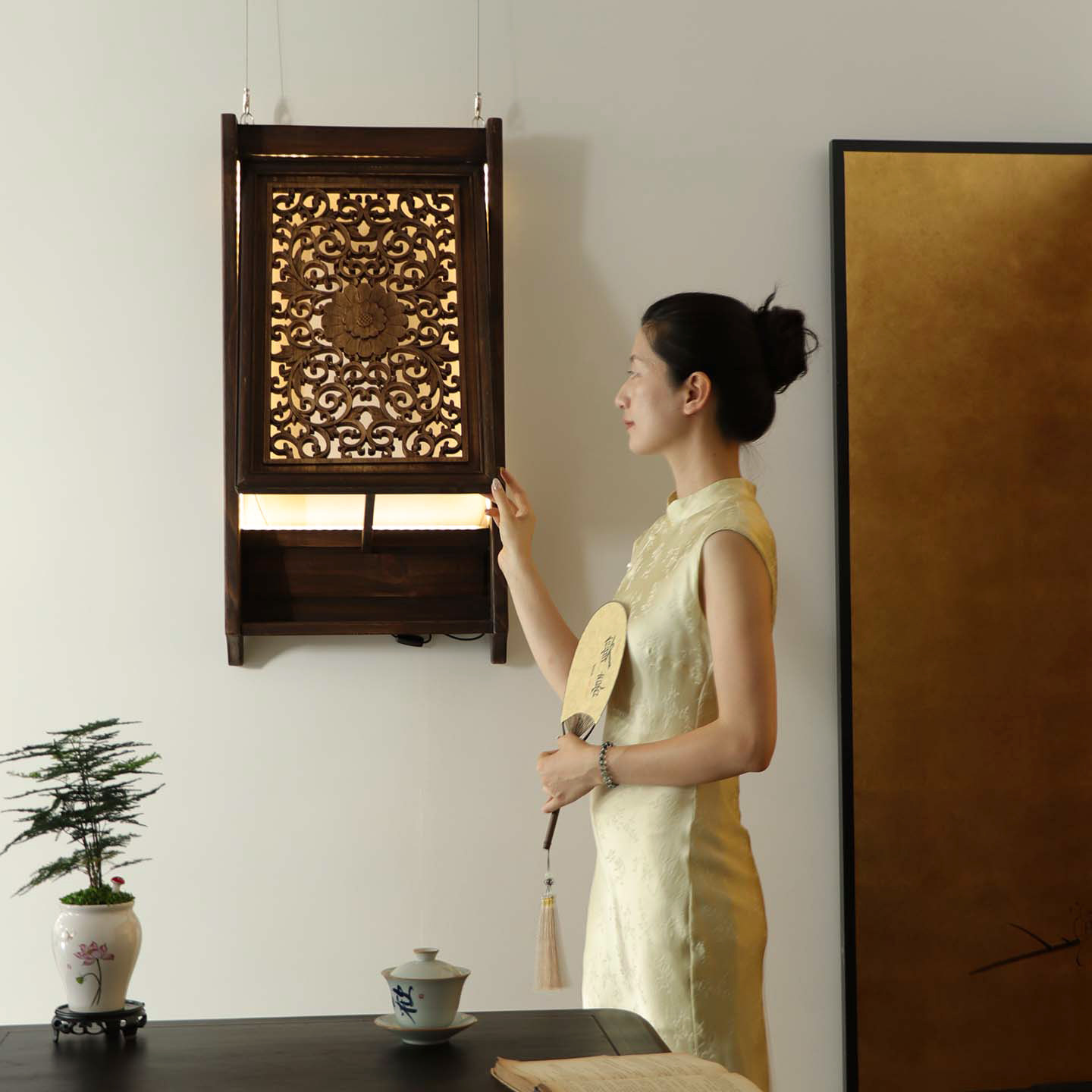 寂然 |东阳木雕花窗壁灯走廊灯格实木镂空花格中式仿古装饰花窗灯