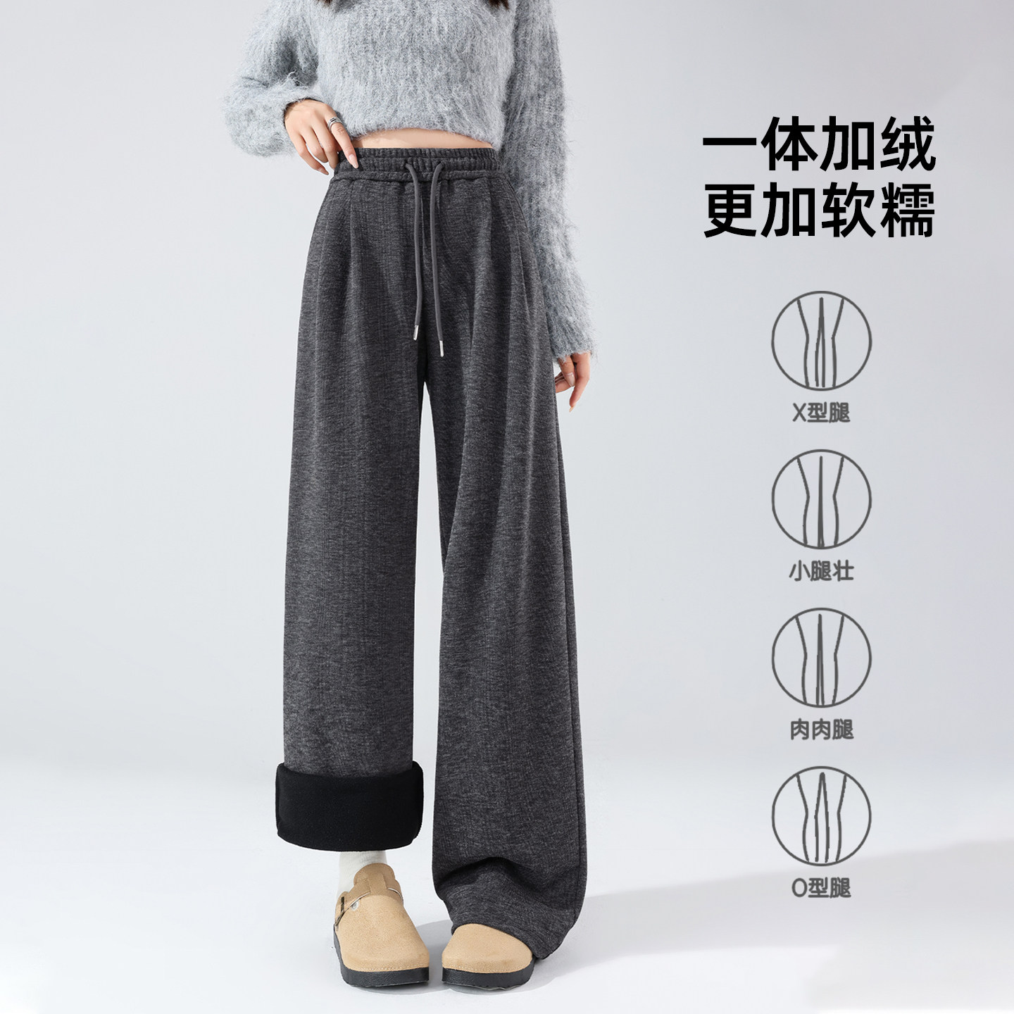 糯米裤女羊羔绒垂坠感软糯加绒加厚秋冬韩系慵懒松弛感阔腿裤TB