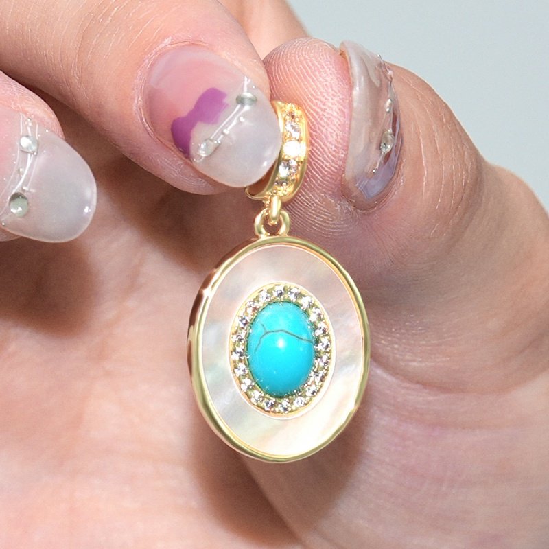 可拆卸DIY天然母贝绿松石挂坠万能扣吊坠单坠挂坠子
