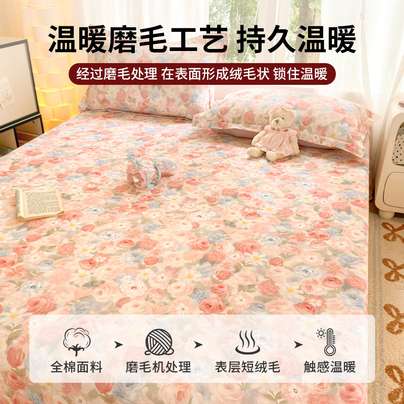 a类秋冬季加厚全棉磨毛床单单件100纯棉被单双人学生宿舍三件套暖