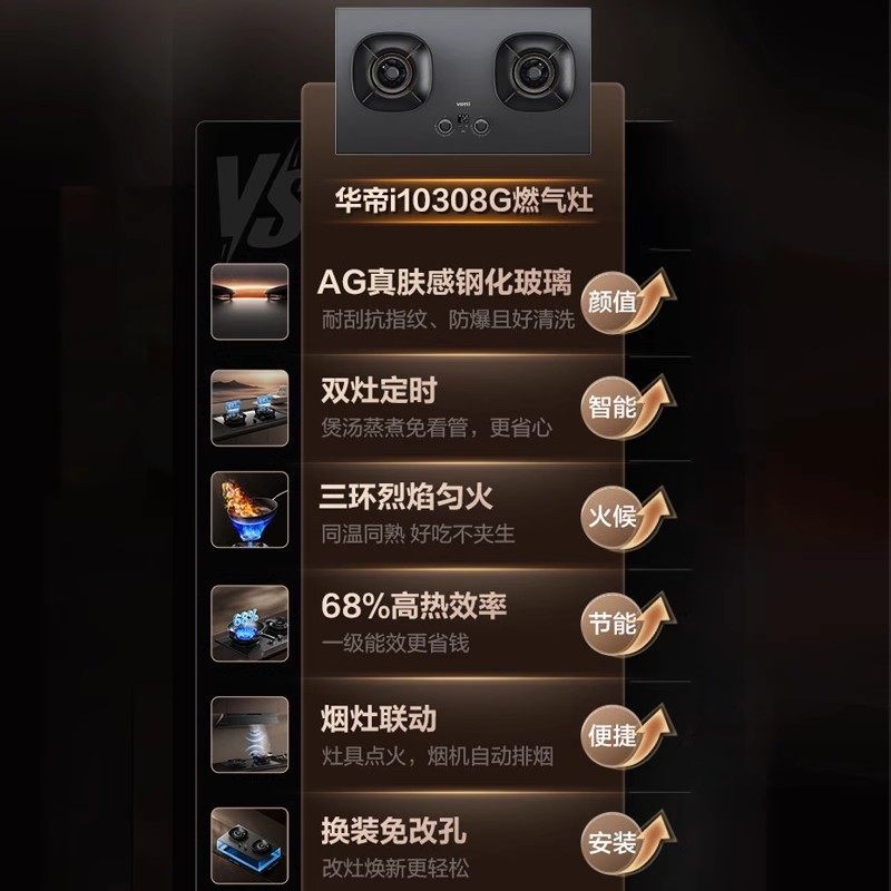 华帝燃气灶i10308G天然气双灶嵌入式猛火灶定时一级能效家用灶具