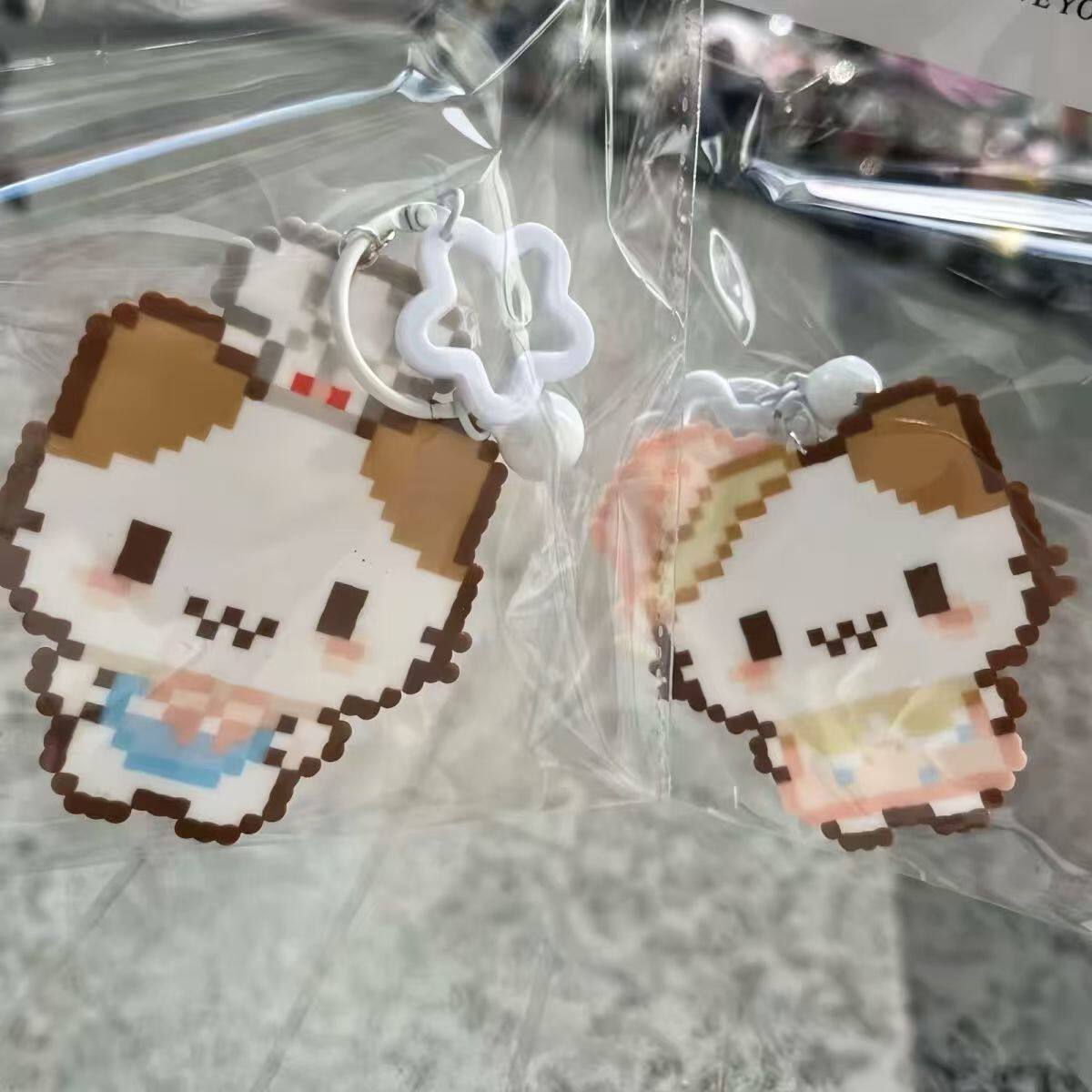 小猫像素卡通钥匙扣萌物精致可爱学生亚克力挂饰包包闺蜜挂件礼物