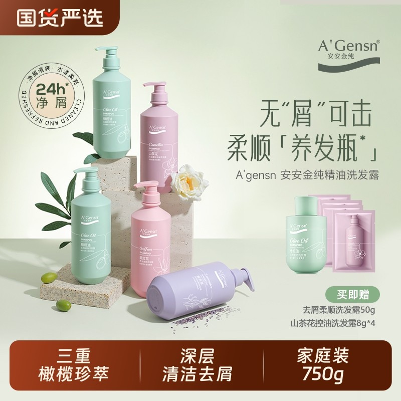 安安金纯橄榄油洗发水控油蓬松去屑山茶花洗发露官方正品洗头膏