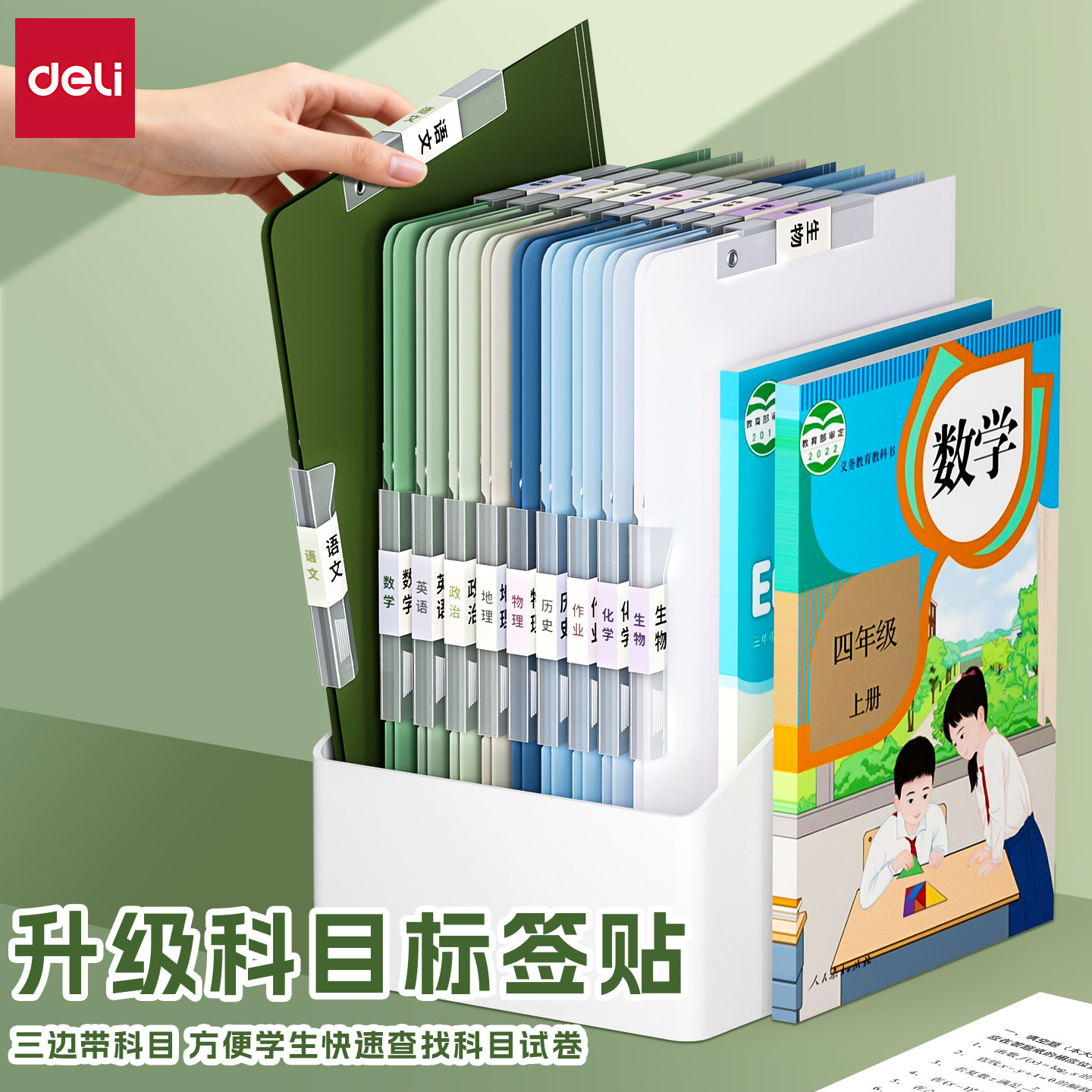 得力旋转拉杆文件夹a3试卷收纳夹小学生卷子整理夹a4加厚侧开抽拉杆夹可放书包分类神器大容量资料夹册文件袋