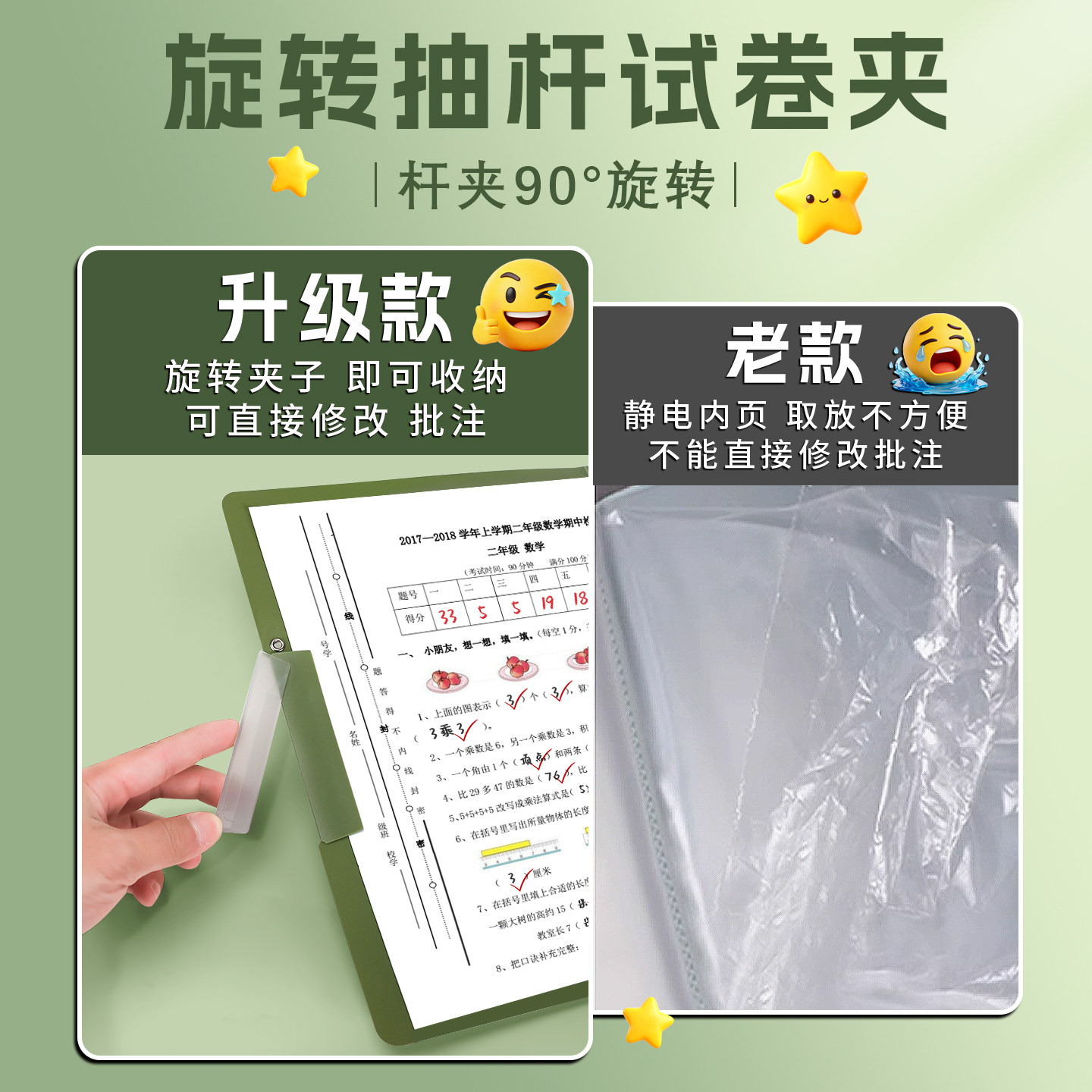 A4纸抽杆夹文件夹加厚抽拉杆夹透明固定学生试卷夹书皮书夹档案夹