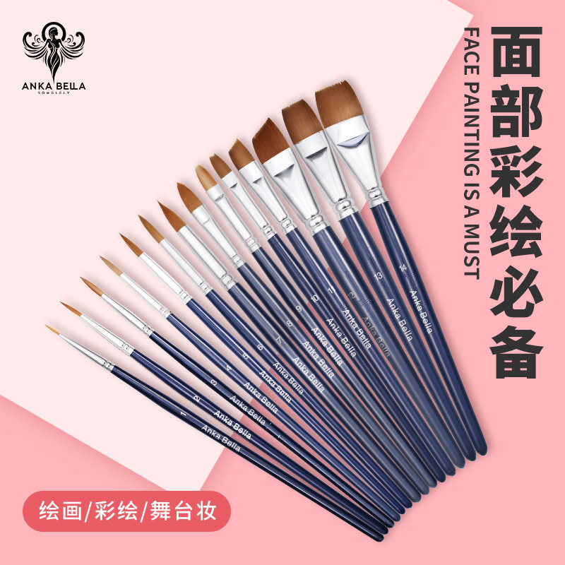 Anka Bella面部彩绘刷水彩勾线笔脸部彩绘笔尼龙平刷基础画笔套装