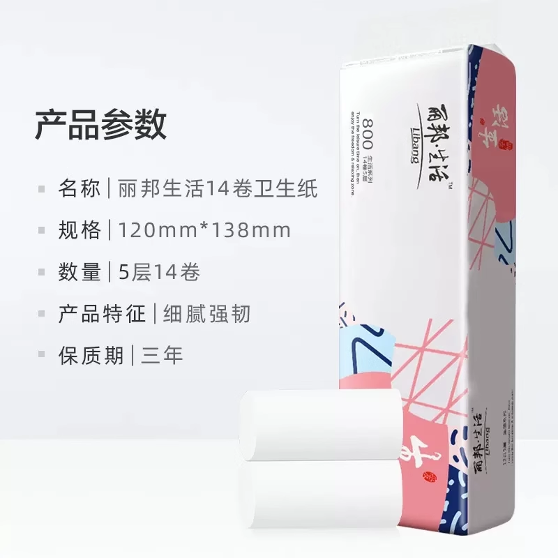 丽邦卫生纸卷纸14卷800g家用实惠装纸巾厕纸厕所手纸无芯卷筒纸