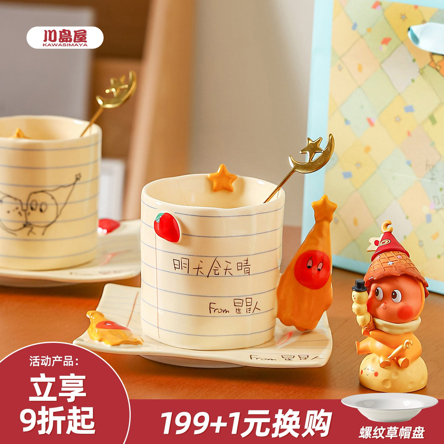 川岛屋星星人杯子马克杯生日礼物送闺蜜礼盒陶瓷情侣水杯咖啡杯碟