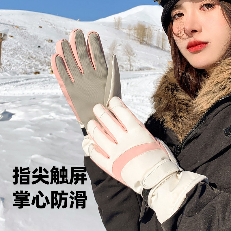 滑雪手套女冬季登雪山加绒厚保暖防寒风骑行棉手套男摩托车触屏A