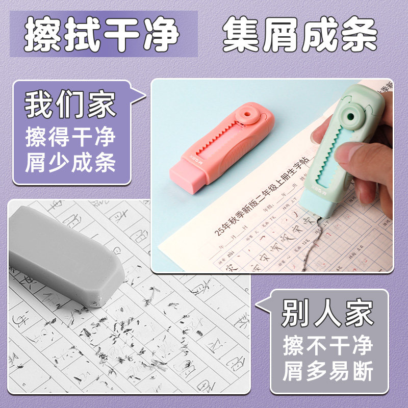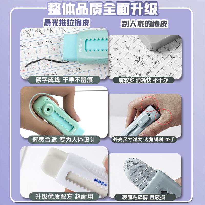 晨光冰淇淋推拉橡皮擦不易留痕无屑小学生专用像皮擦超干净橡皮擦儿童推动式幼儿园专用铅笔象皮擦橡皮替换芯